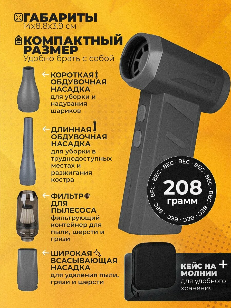 Воздуходувка Nova Store, аккумуляторная, для ПК, ручная, турбовентиляция, 4 режима, серая интересное: