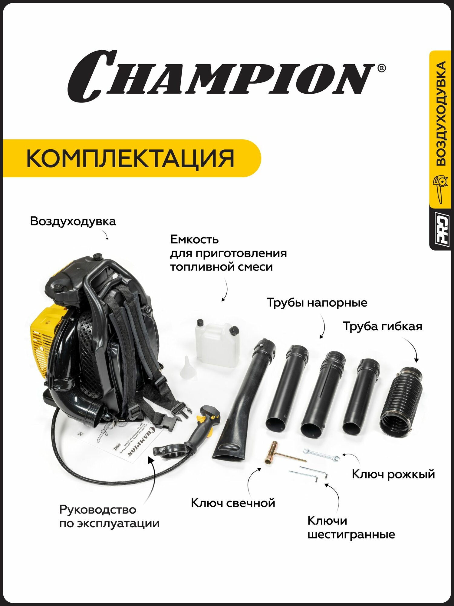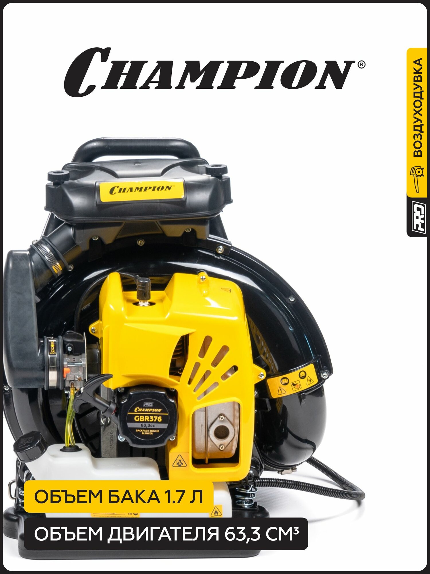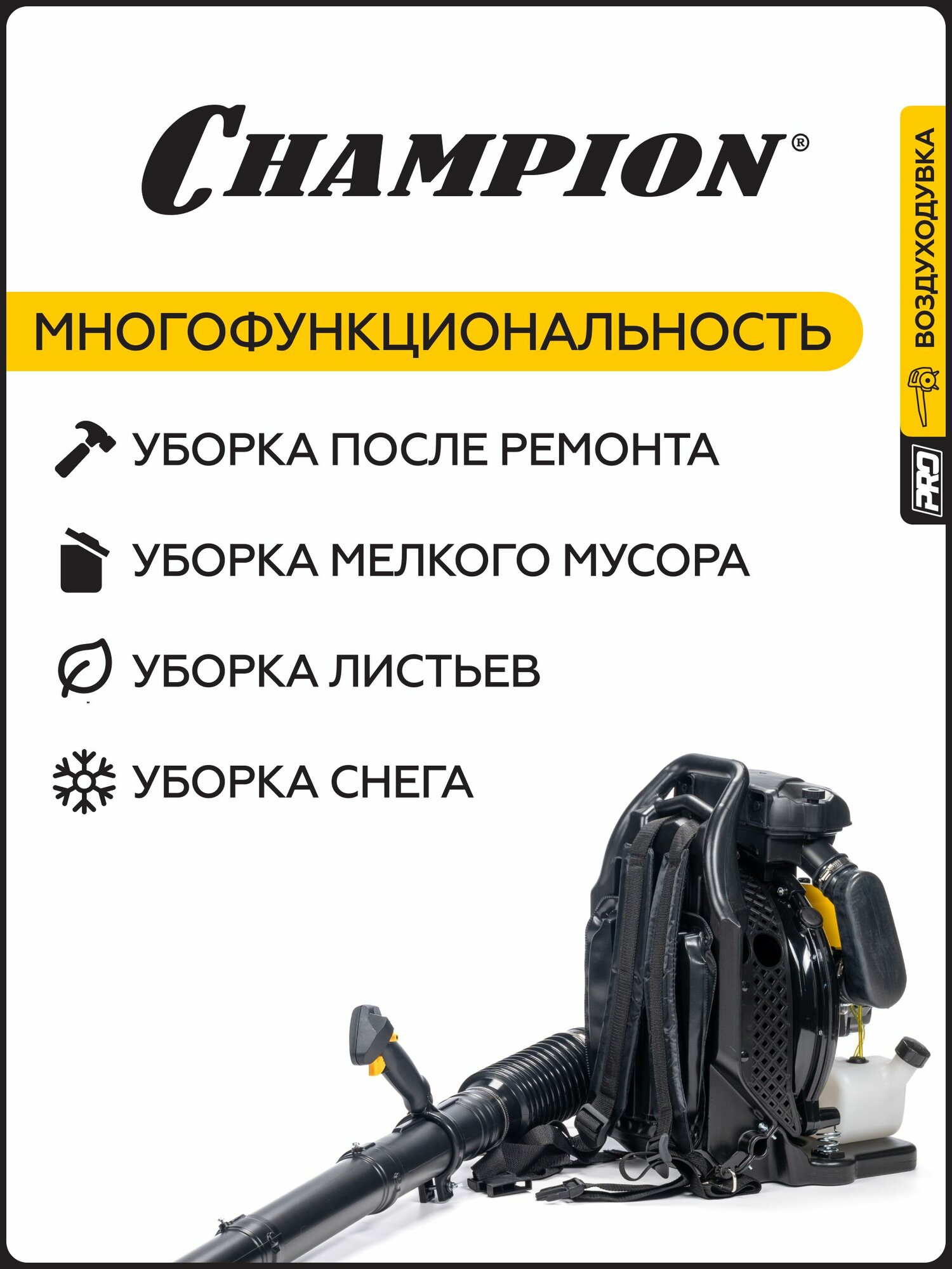 Воздуходувка бензиновая CHAMPION GBR376, 2,7 кВт, 1440 м3/ч, 95 м/с, 10,5 кг интересное: