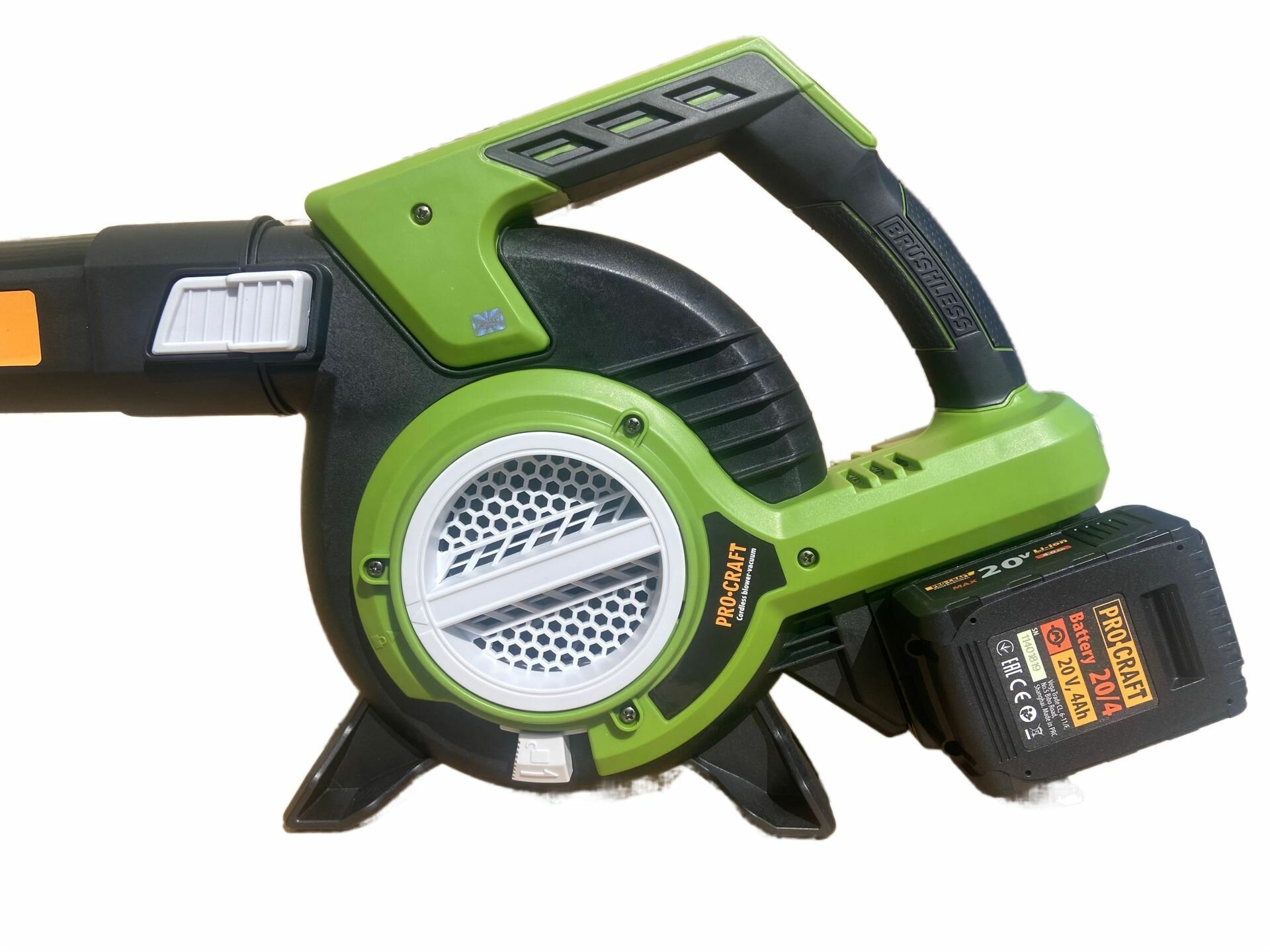 Пылесос-воздуходувка аккумуляторная ProCraft VB-20 (2 АКБ + ЗУ), измельчение, скорость воздуха 70 м/с, 16300 об/мин интересное: