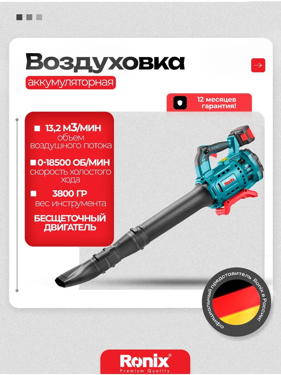 Воздуходувка аккумуляторная садовая Ronix 18000 об/мин 1 акб