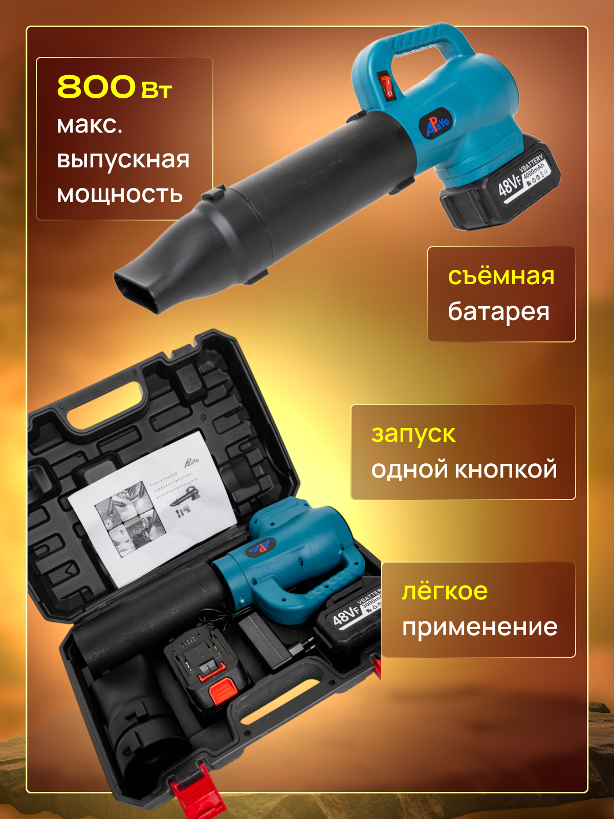 Купить Воздуходувка аккумуляторная ApaYo Турбовентилятор садовый