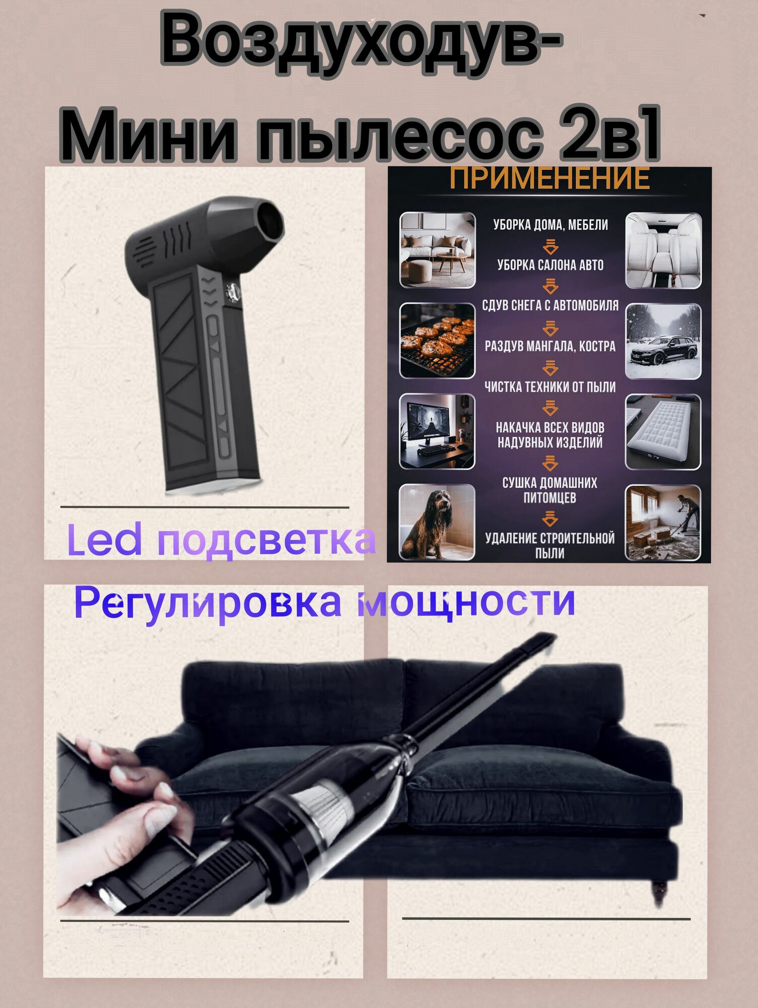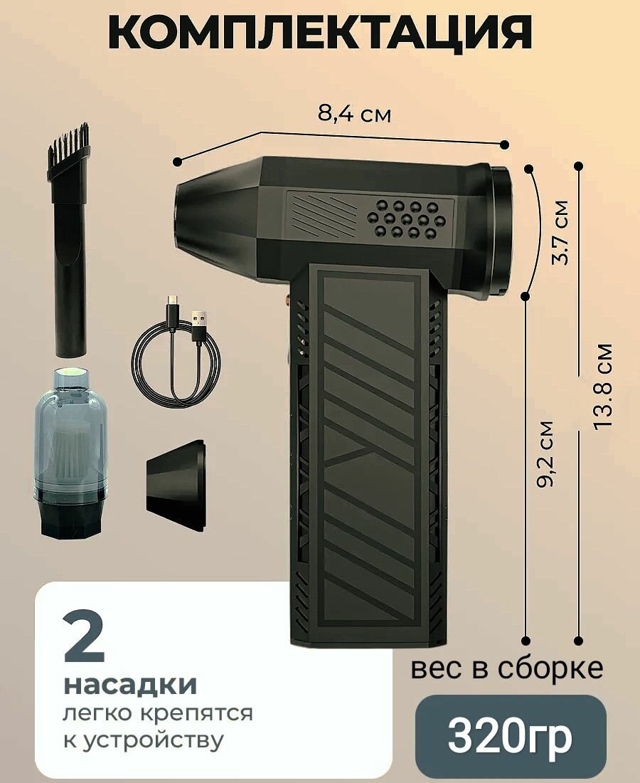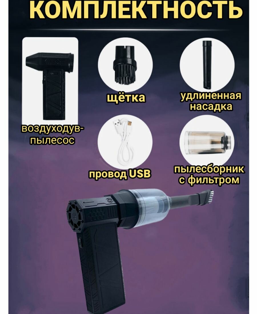 Мини-пылесос, функция фена, подсветка зоны уборки, беспроводной, аккумуляторный, черный интересное: