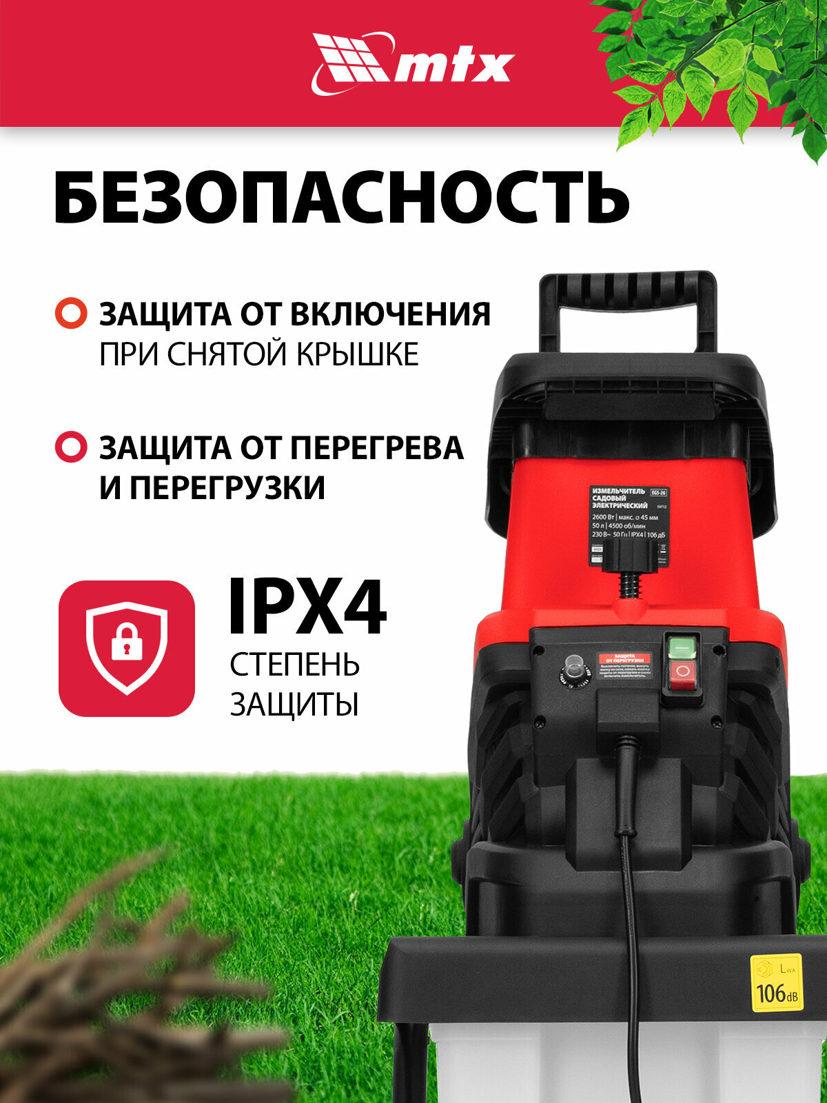 Измельчитель садовый электрический MTX, EGS-26, 2600 Вт, 45 мм, 59712 интересное: