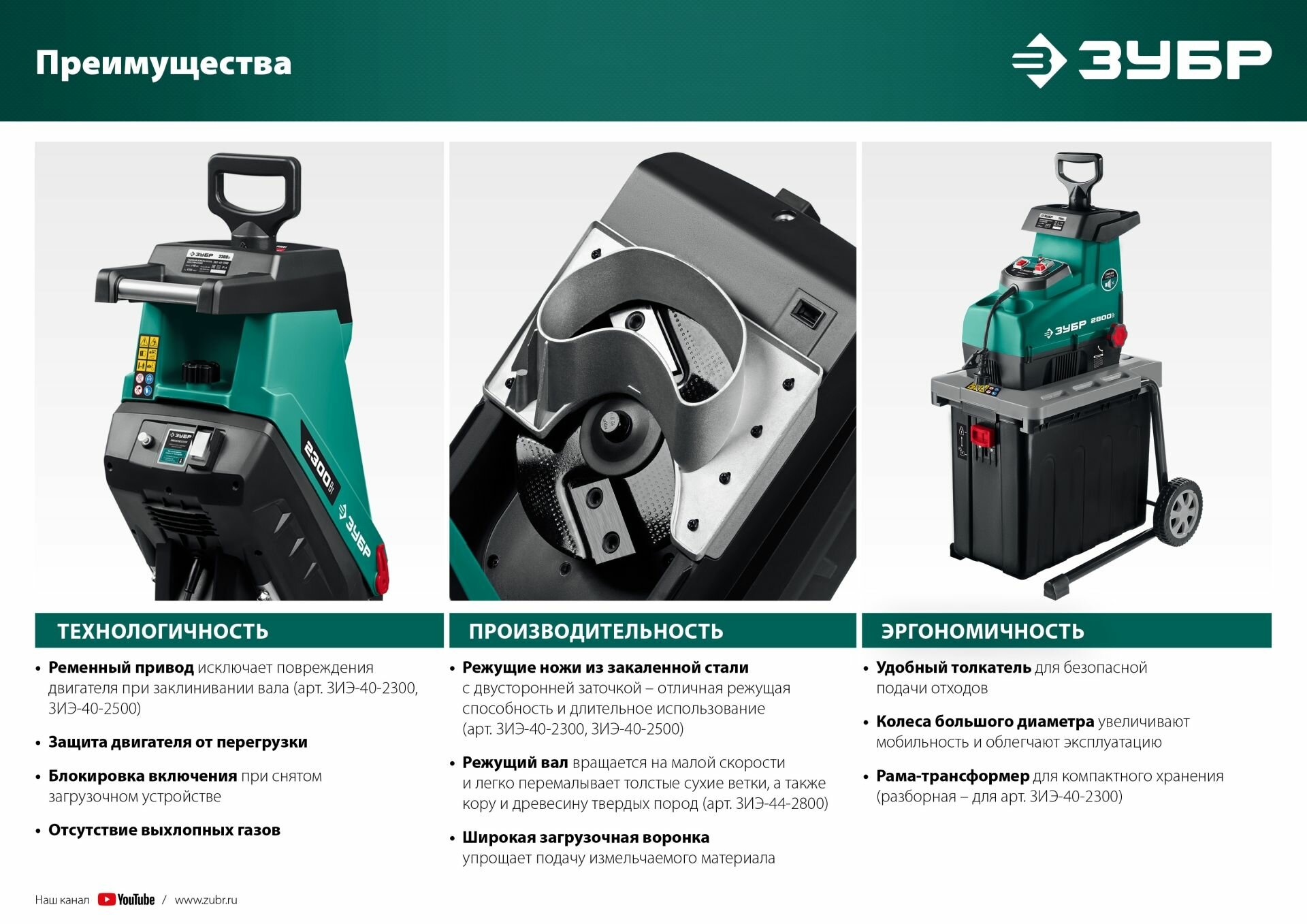 Измельчитель садовый электрический ЗУБР 2300 Вт (ЗИЭ-40-2300) интересное: