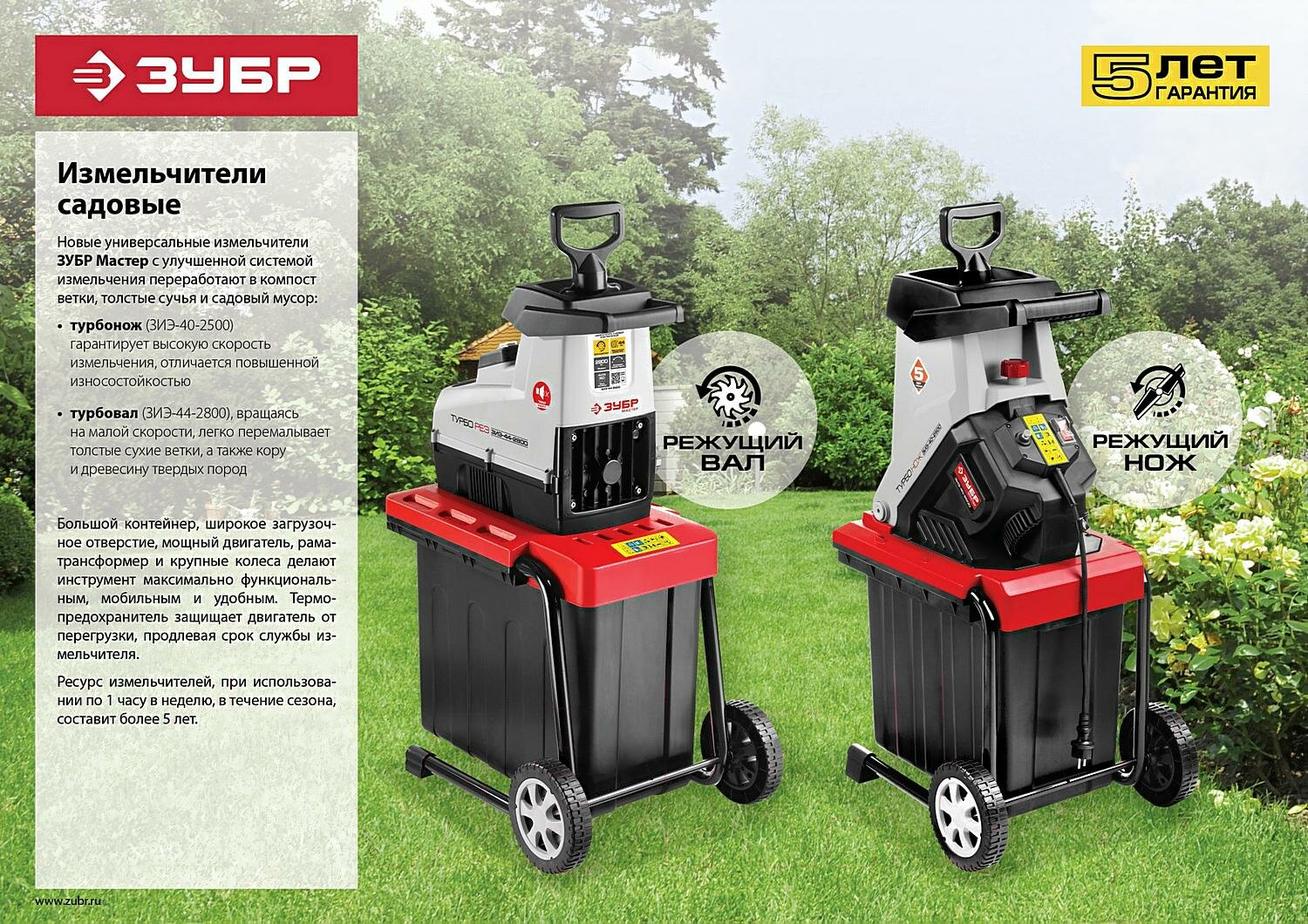 ЗУБР Садовый измельчитель Зубр ЗИЭ-40-2500 2500Вт 4050об/мин интересное: