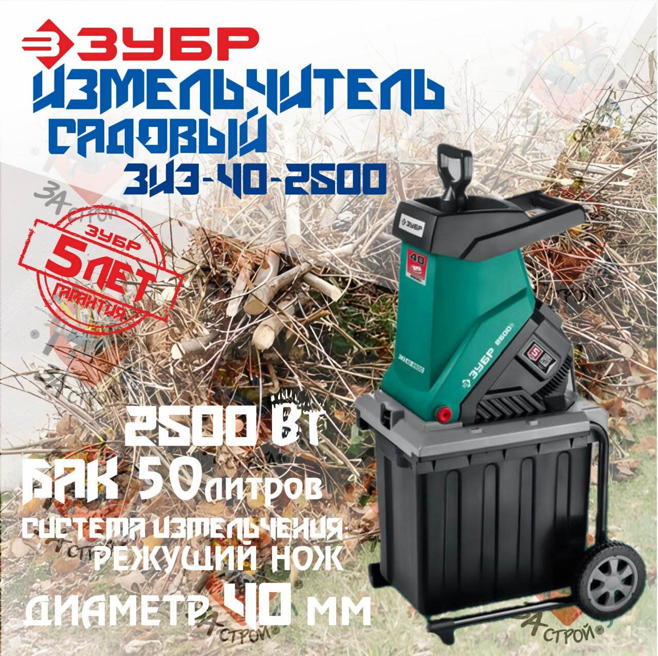 Измельчитель садовый электрический ЗУБР, 2500 Вт, (ЗИЭ-40-2500) интересное:
