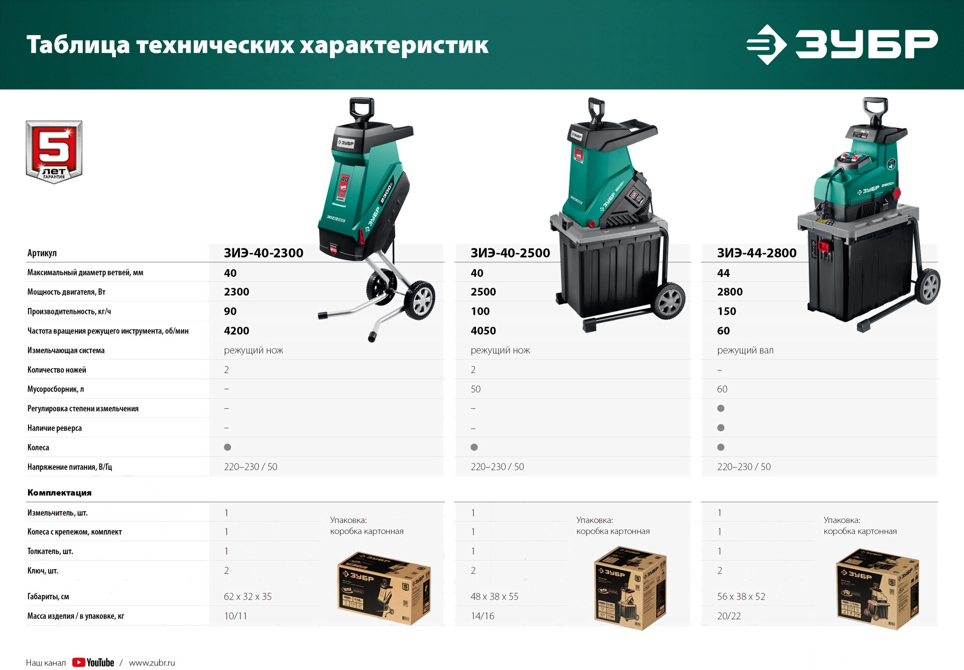 ЗУБР Садовый измельчитель Зубр ЗИЭ-40-2300 2300Вт 4200об/мин интересное: