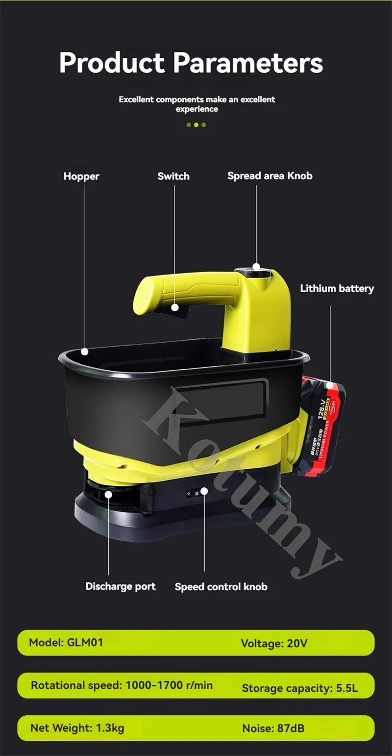 Купить Электрический разбрасыватель удобрений GLM01, 2 battery