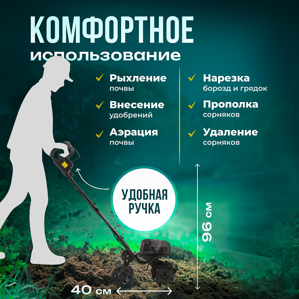 Культиватор Kettama ECO B07 Max, аккумуляторный, червячный редуктор, на колесах интересное: