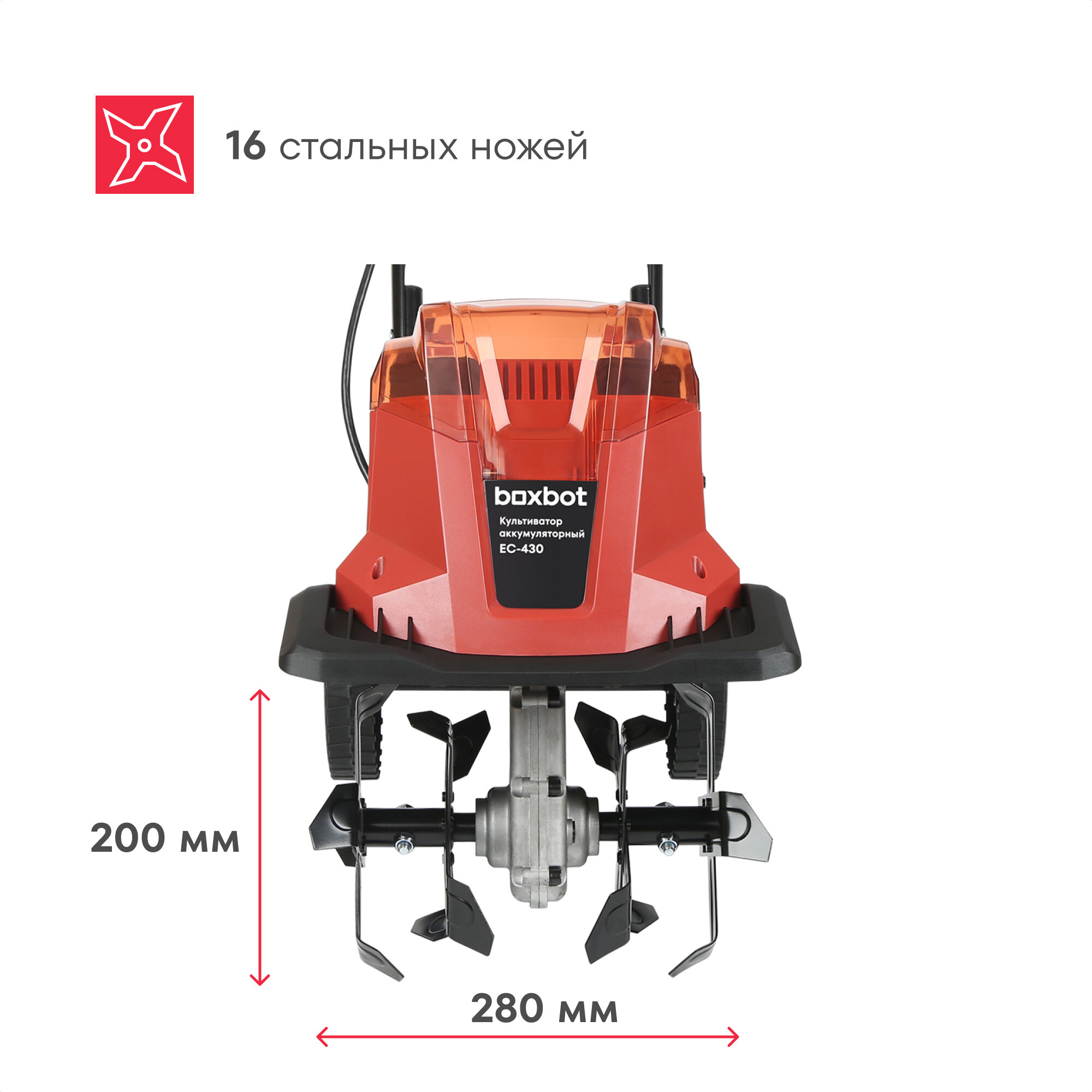 Культиватор аккумуляторный Boxbot EC 430, 40 Вольт, 2 аккумулятора 4 А*ч, ширина 280 мм интересное: