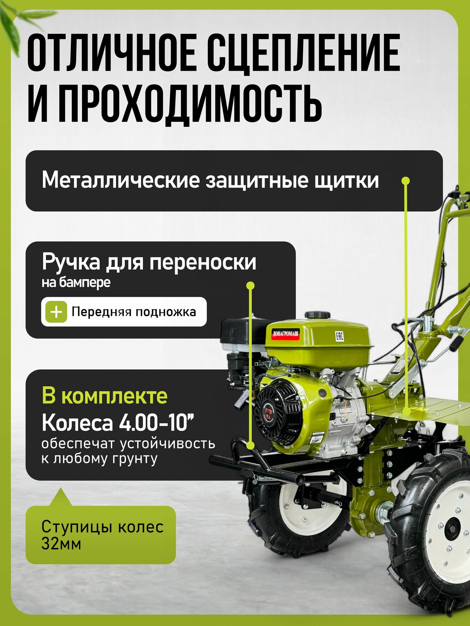 Купить Донагромаш Мотоблок бензиновый редукторный ДА1100-3 (9 л. с, 3 вперед / 1 назад, колеса 4х10)