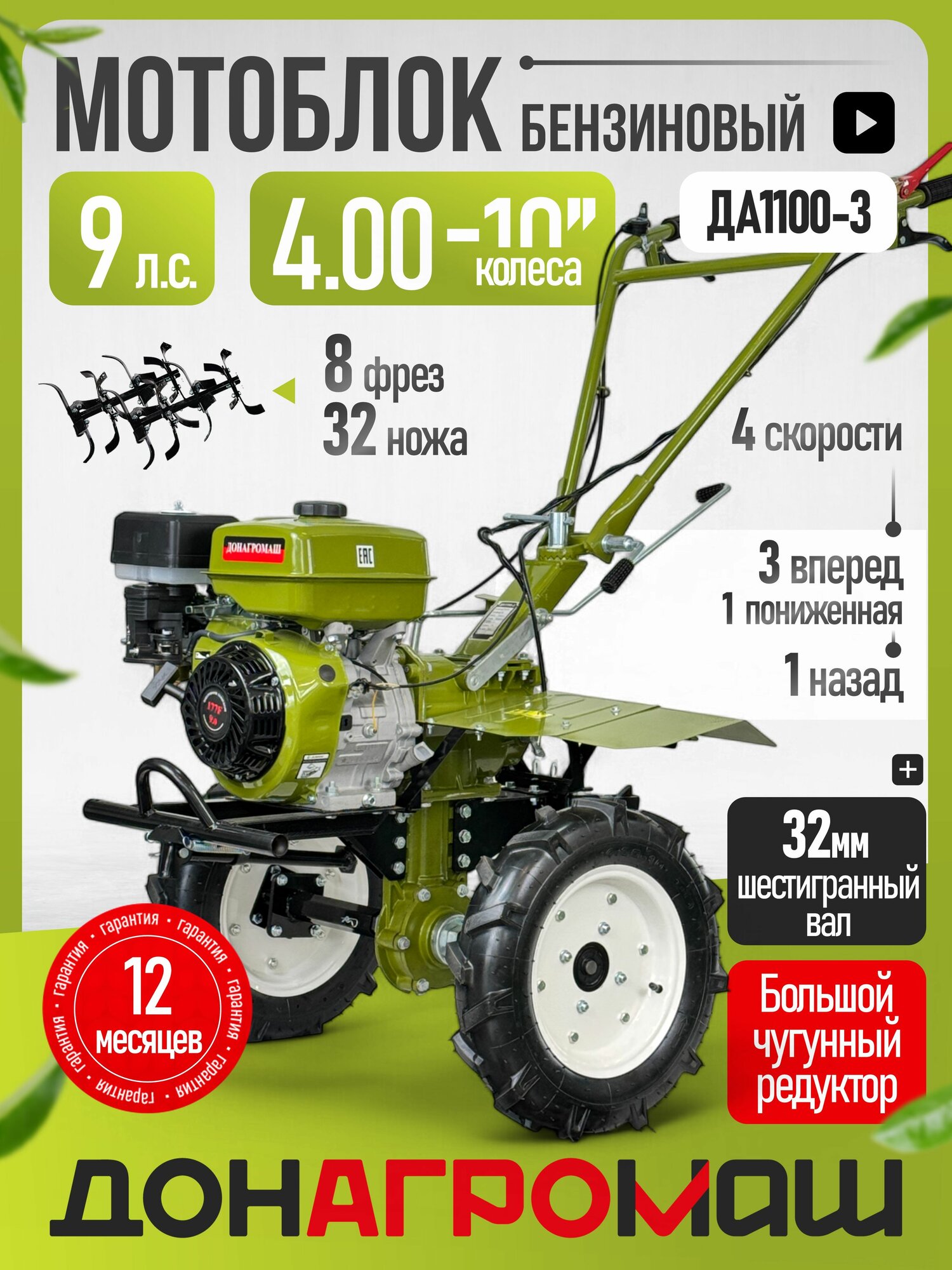 Донагромаш Мотоблок бензиновый редукторный ДА1100-3 (9 л. с, 3 вперед / 1 назад, колеса 19x7-8)