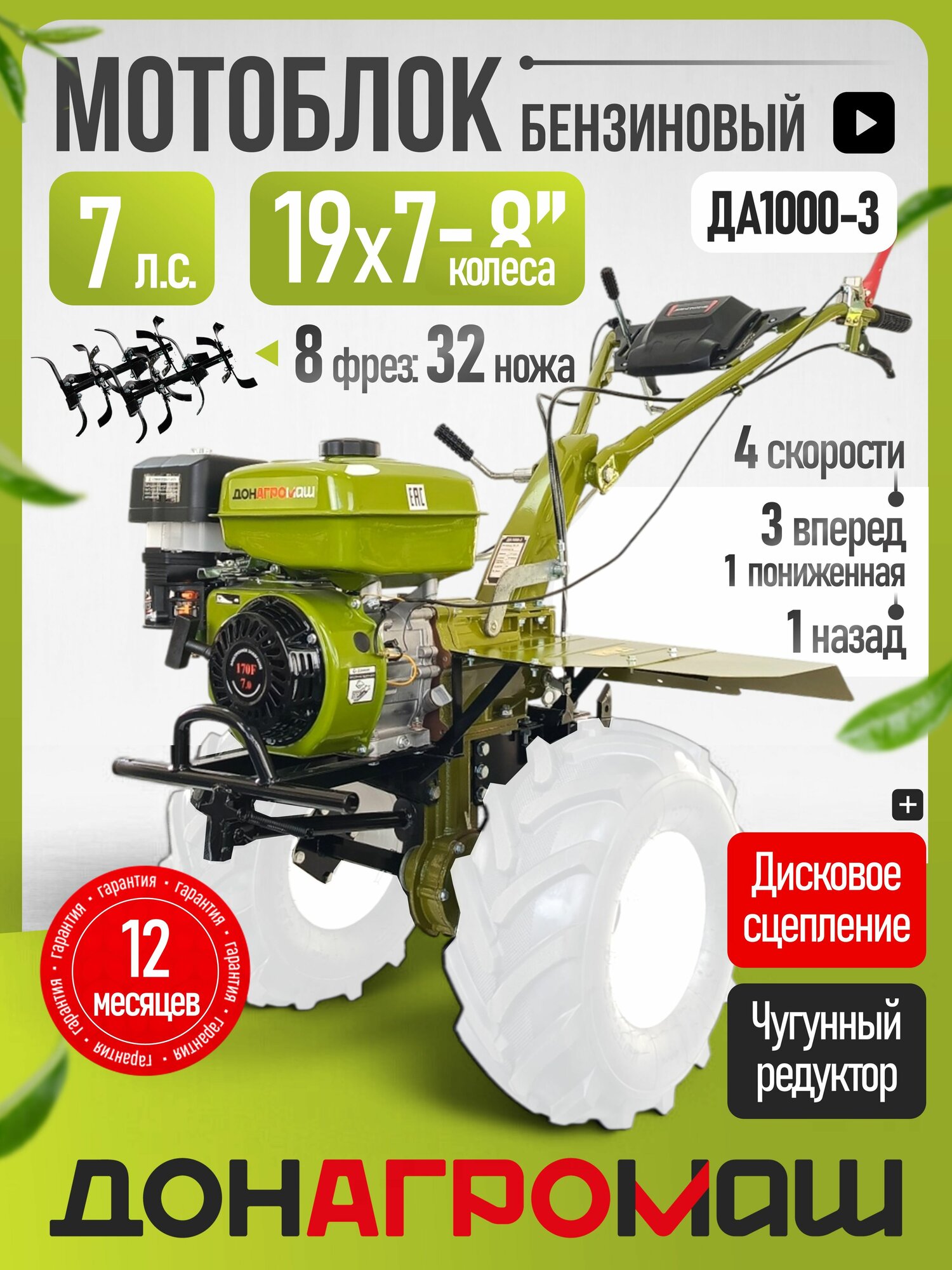 Купить Донагромаш Мотоблок бензиновый редукторный ДА1000-3 (7 л. с, 3 вперед / 1 назад, без колес)