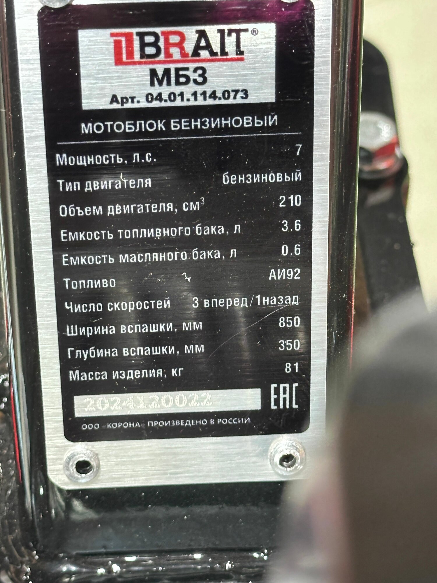 Мотоблок бензиновый BRAIT МБ3 (7л. с, с пониженной передачей) интересное: