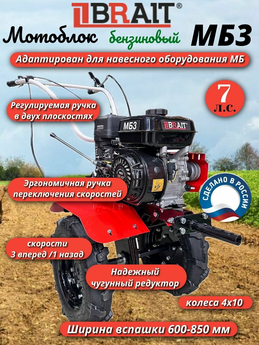 Купить Мотоблок бензиновый BRAIT МБ3 (7л. с, с пониженной передачей)