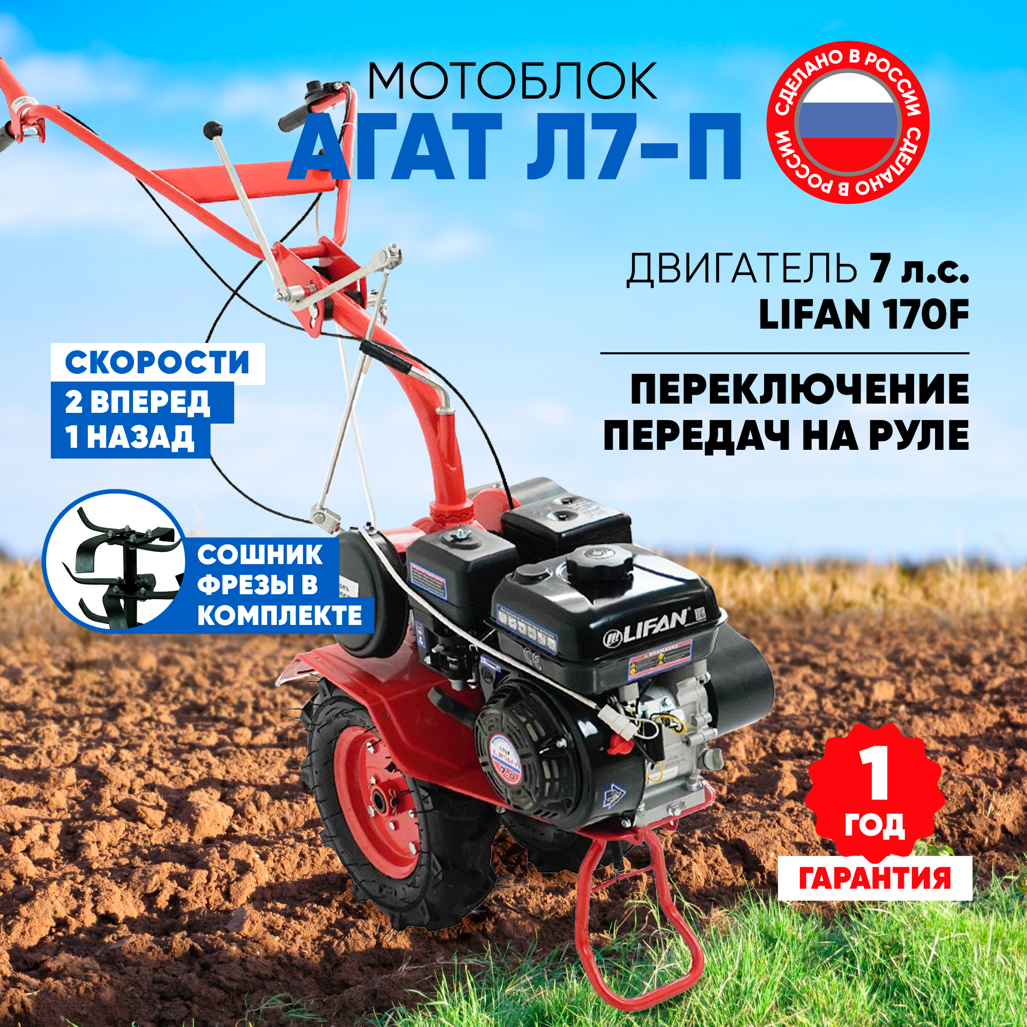 Мотоблок бензиновый Агат Л7-П (Lifan 170F), 7лс, колеса 4.00*8, КПП 2 вперед 1 назад интересное: