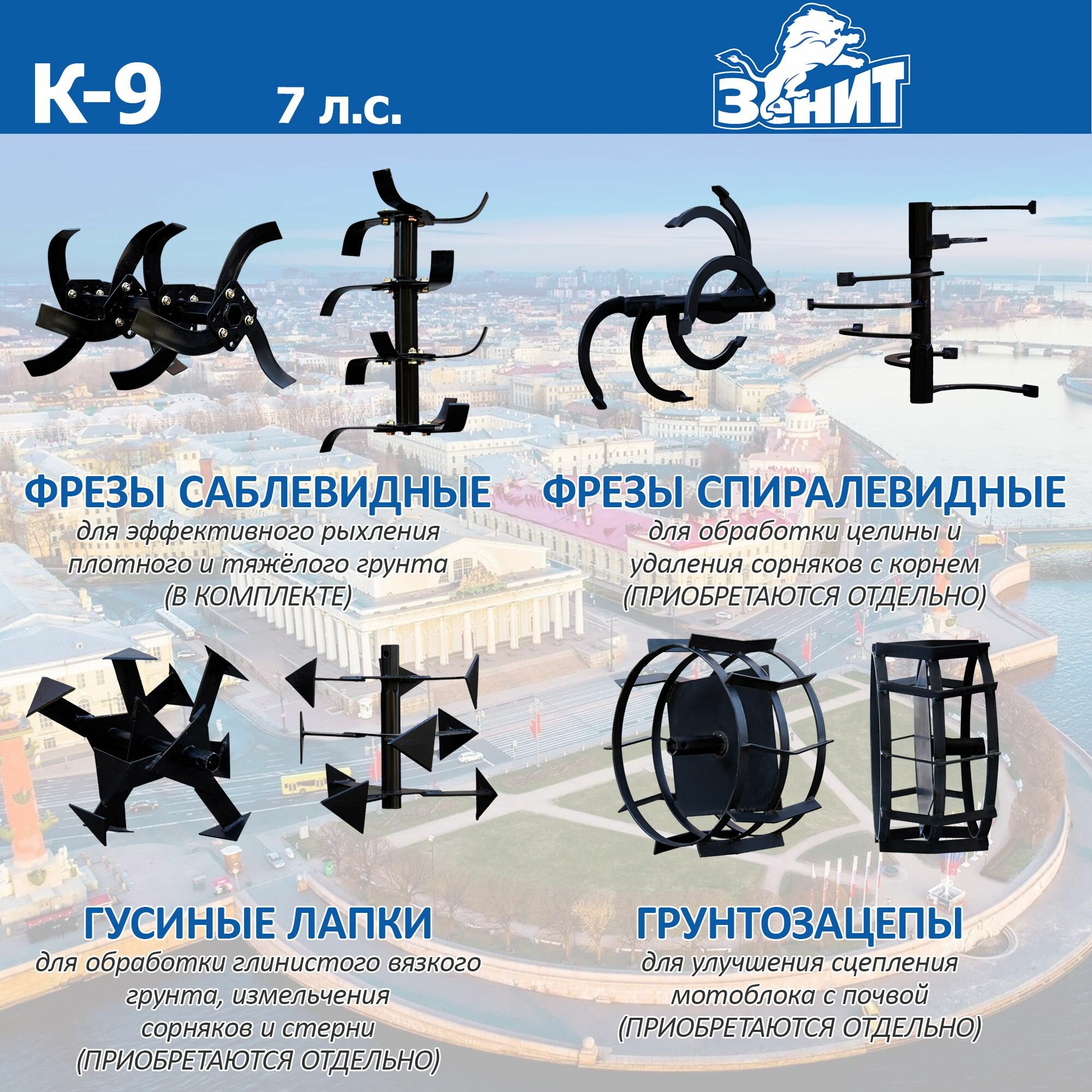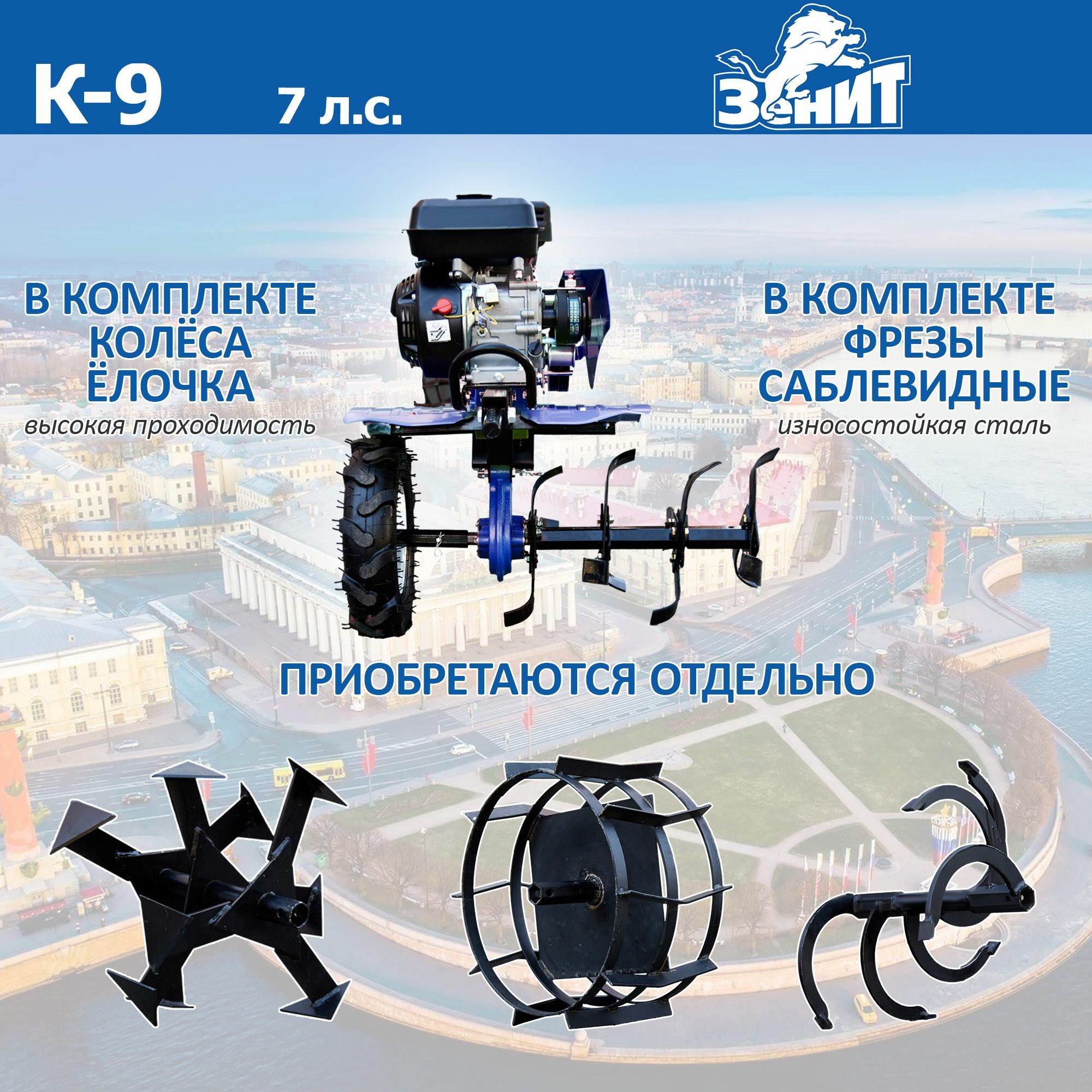 Купить Мотоблок Ставмаш Зенит К-9, чугунный редуктор, мощность 7 л. с