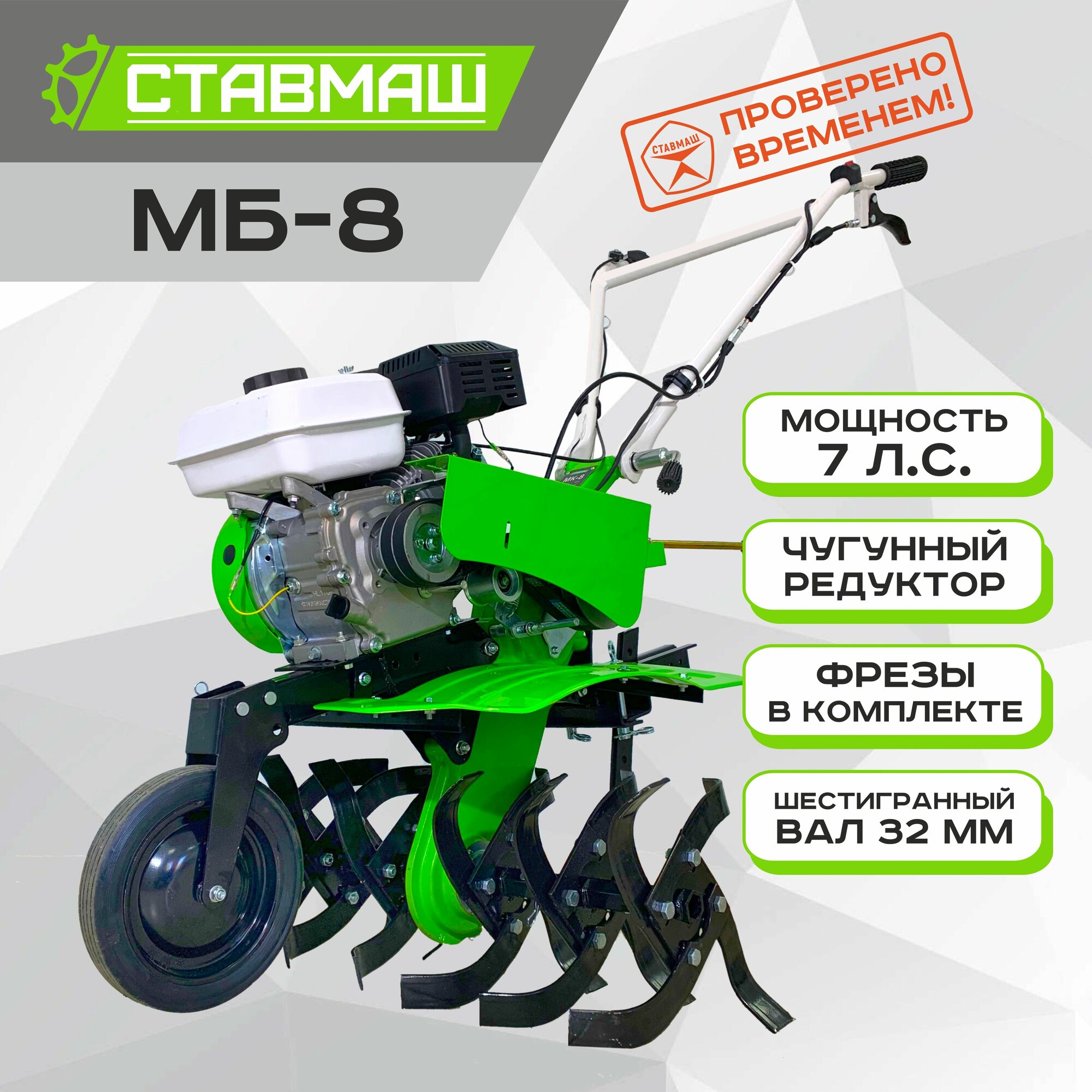Ниже Вы можете прочитать отзывы на Мотоблок Ставмаш МБ-8 (7л. с, 2 скор. 1 зад, чугун. редуктор), ознакомится с подробными характеристиками, посмотреть интересные обзоры и фотографии на Мотоблок Ставмаш МБ-8 (7л. с, 2 скор. 1 зад, чугун. редуктор).