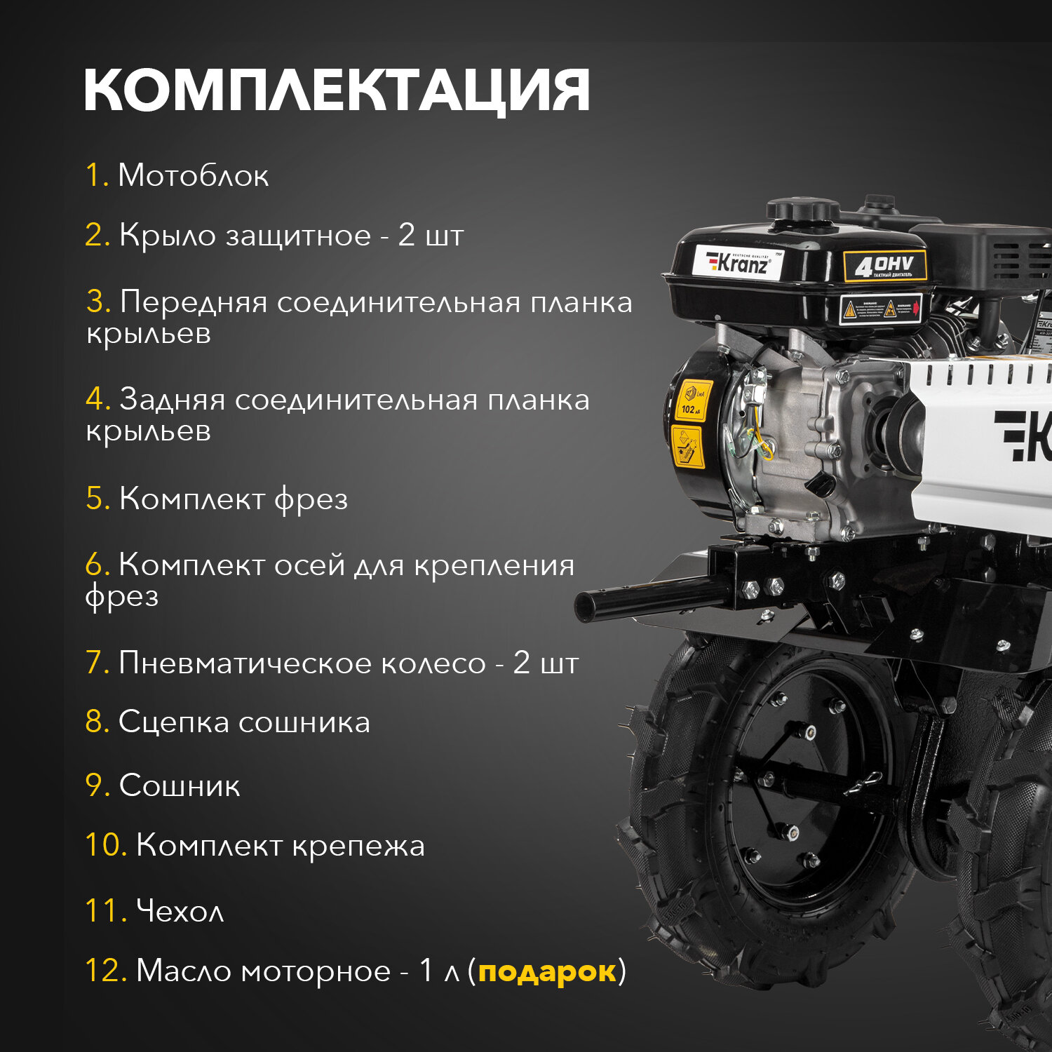Мотоблок Kranz, 7 л. с, 24 фрезы, с колесами, глубина вспашки до 35 см интересное: