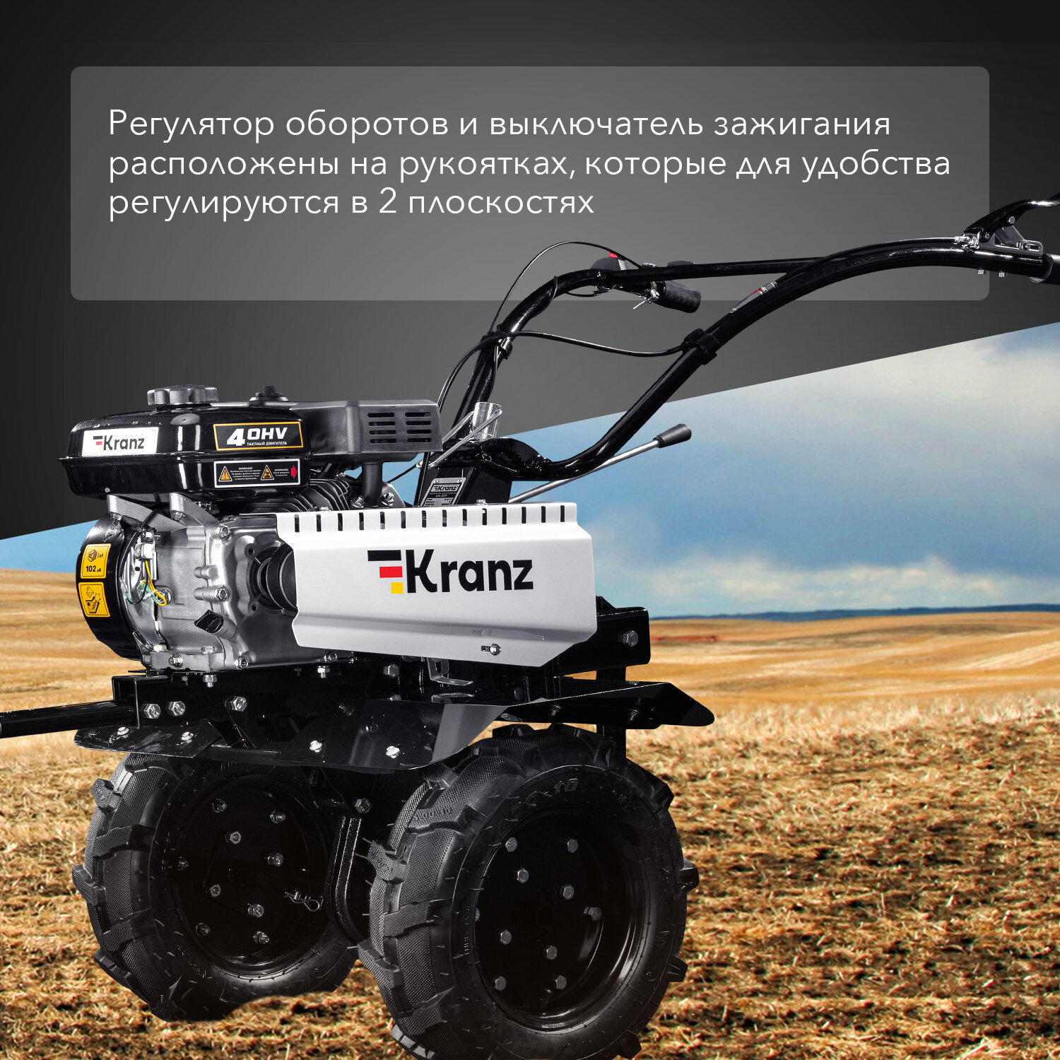 Купить Мотоблок Kranz, 7 л. с, 24 фрезы, с колесами, глубина вспашки до 35 см