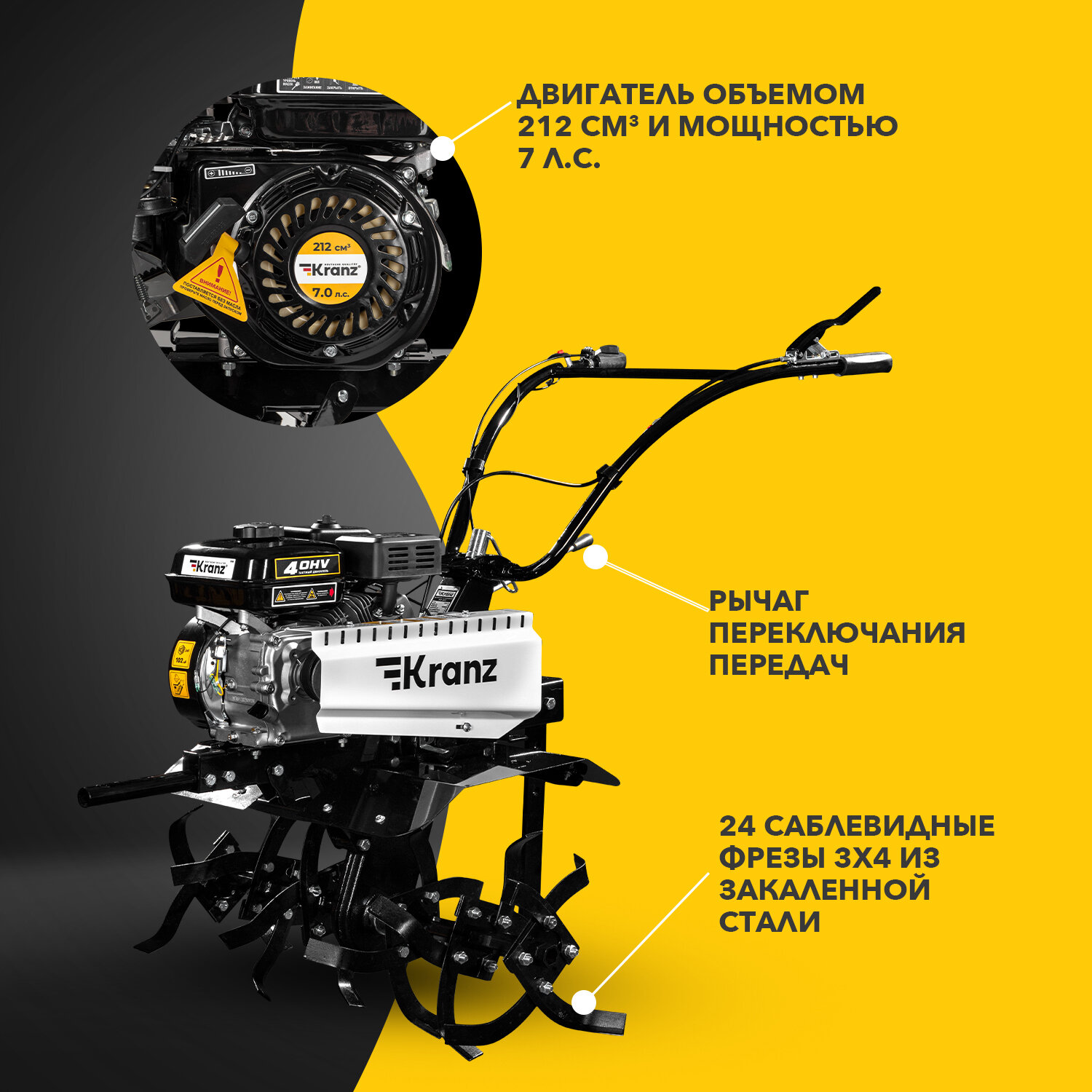 Купить Мотоблок Kranz KR-307, бензиновый, 7 л. с, 212 куб. см, 3 передачи