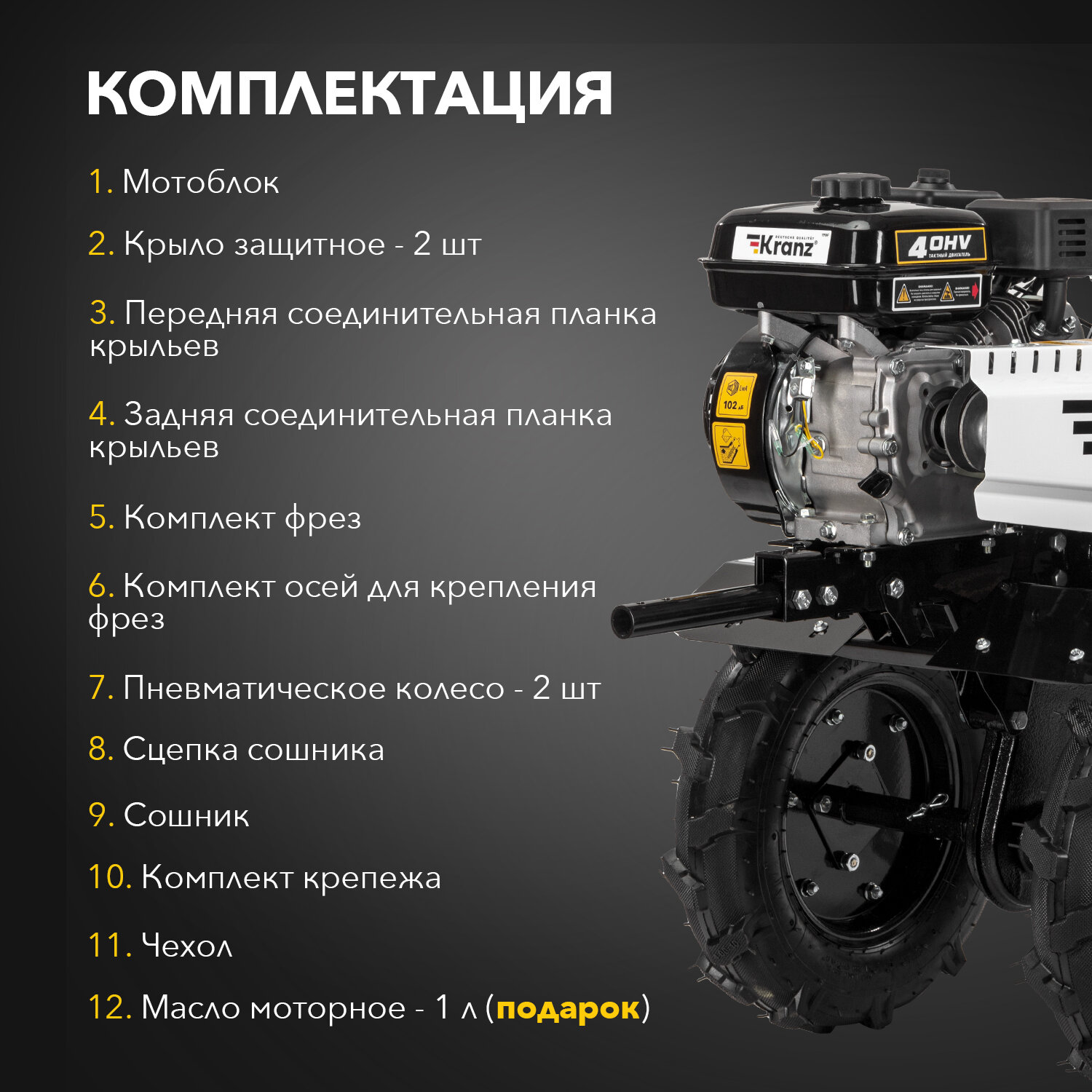 Мотоблок Kranz KR-307, бензиновый, 7 л. с, 212 куб. см, 3 передачи интересное: