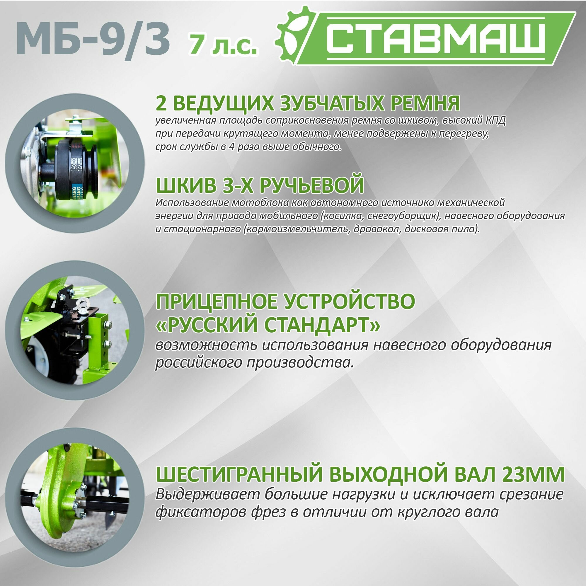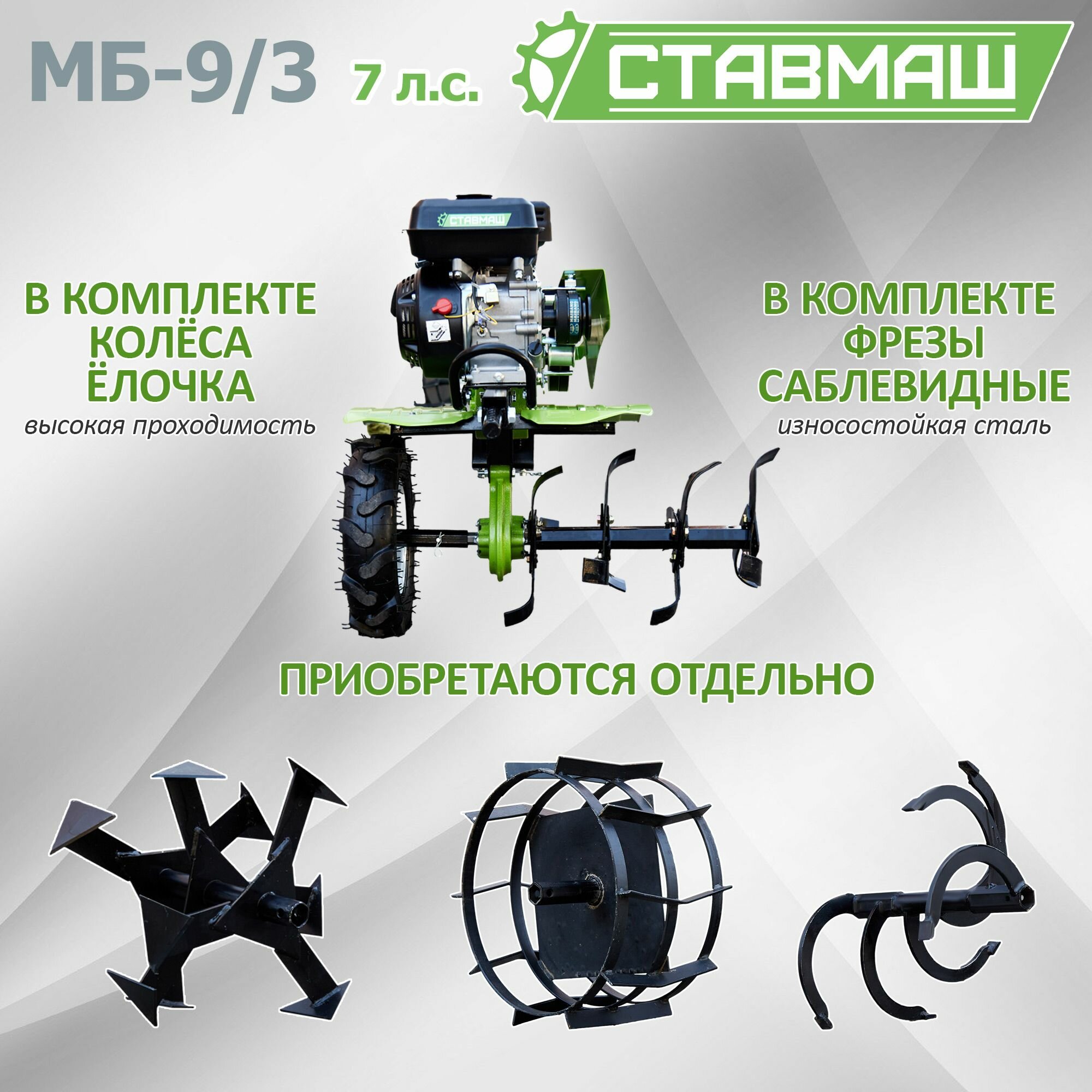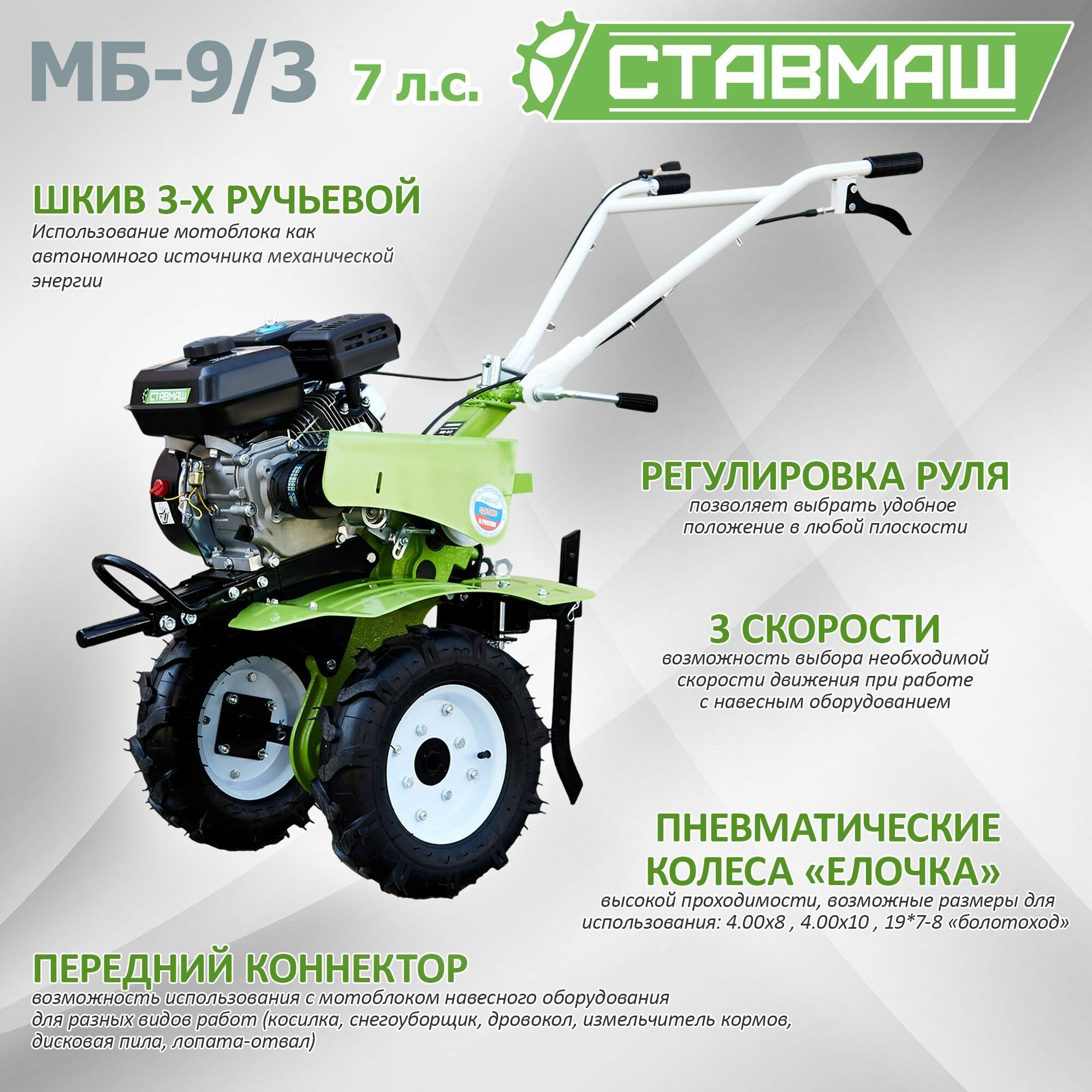 Купить Мотоблок Ставмаш "МБ-9/3", бензиновый, 7л. с, 3 скорости, ширина культивации 95 см
