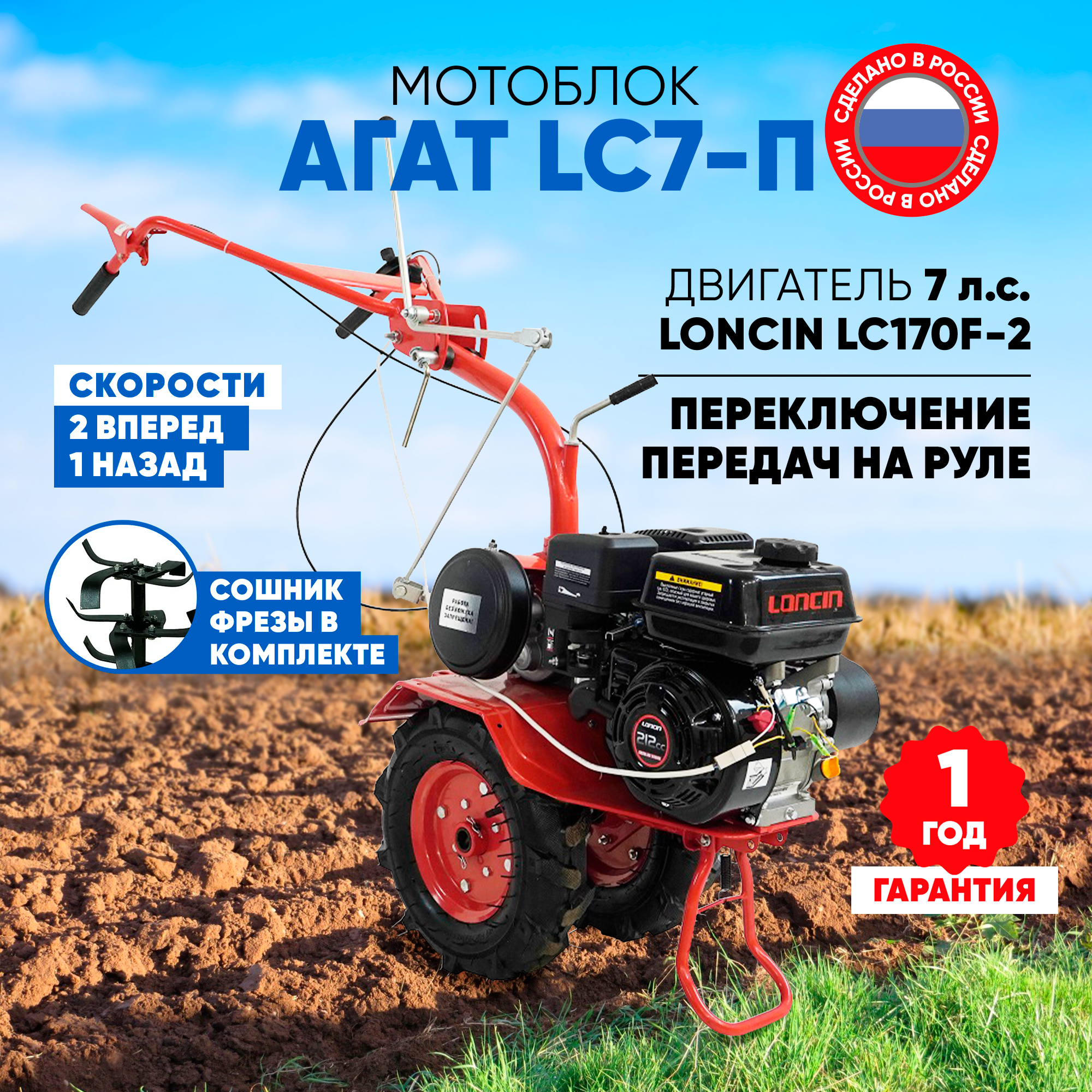 Мотоблок бензиновый Агат LC7-П (Loncin 170F-2), 7лс, колеса 4.00*8, КПП 2 вперед 1 назад интересное: