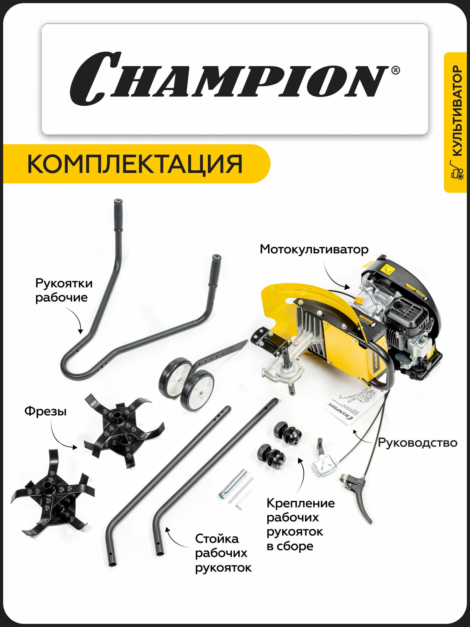 Культиватор бензиновый CHAMPION BC4401, 3 кВт, 1F, D 27 см, 38 см интересное: