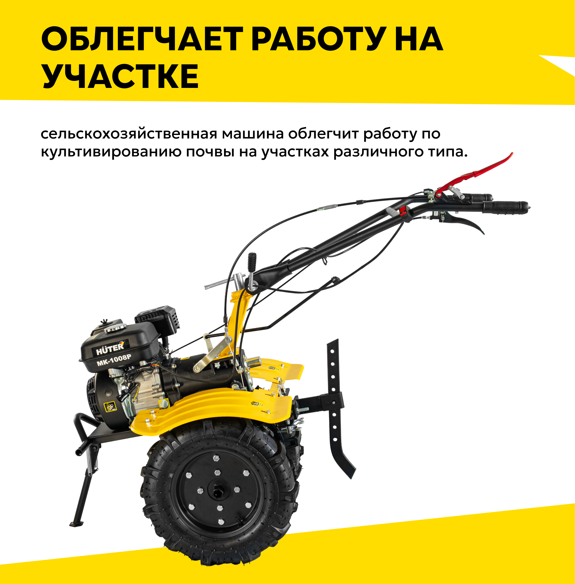 Сельскохозяйственная машина HUTER МК-1008Р, 8 л. с, четырехтактный, бензин, бак – 3.6 л, ширина – 100 см интересное: