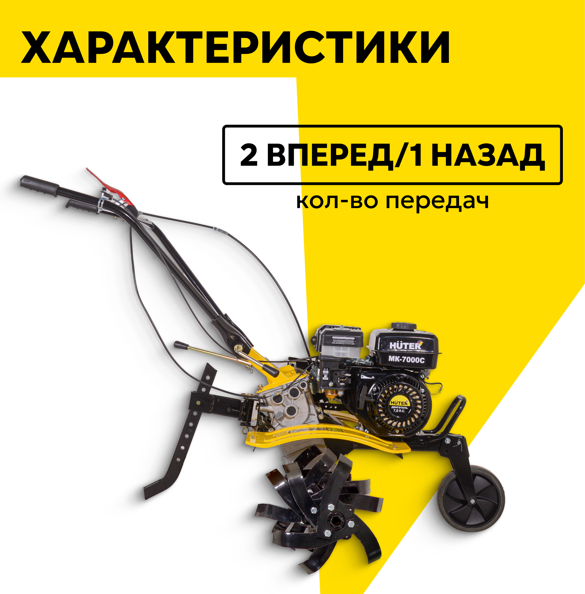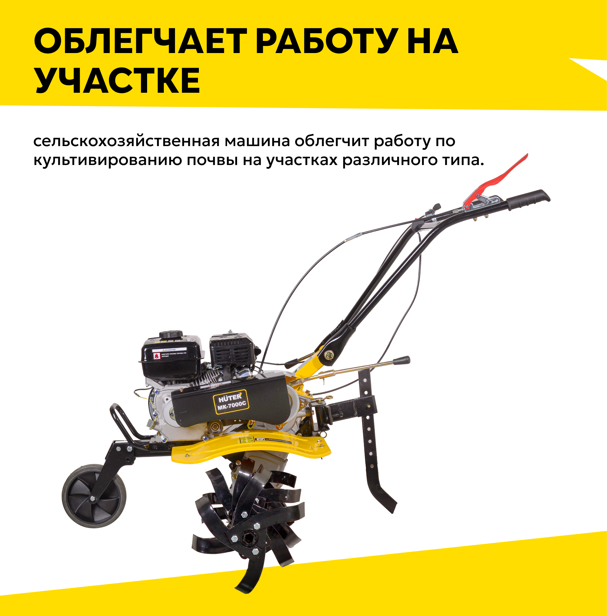 Сельскохозяйственная машина HUTER MK-7000PС без колёс, 7 л. с, четырехтактный, бензин, бак – 3.6 л, ширина – 100 см интересное: