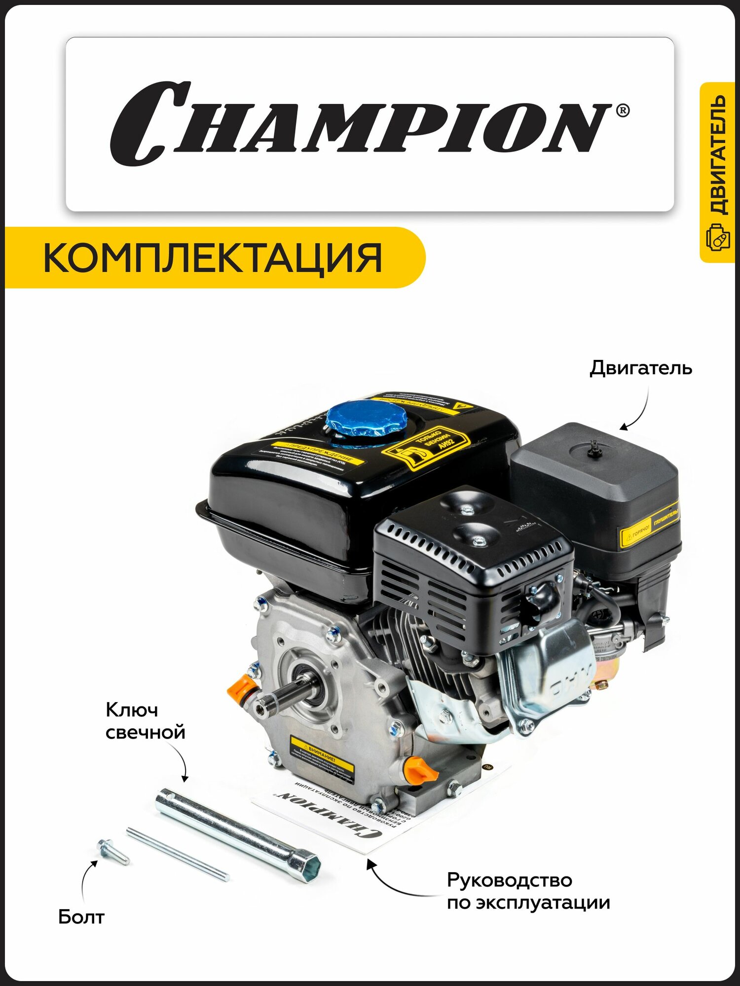 Двигатель бензиновый четырехтактный CHAMPION G200-1HK, 4,8 кВт, 196 см3, ручной запуск интересное: