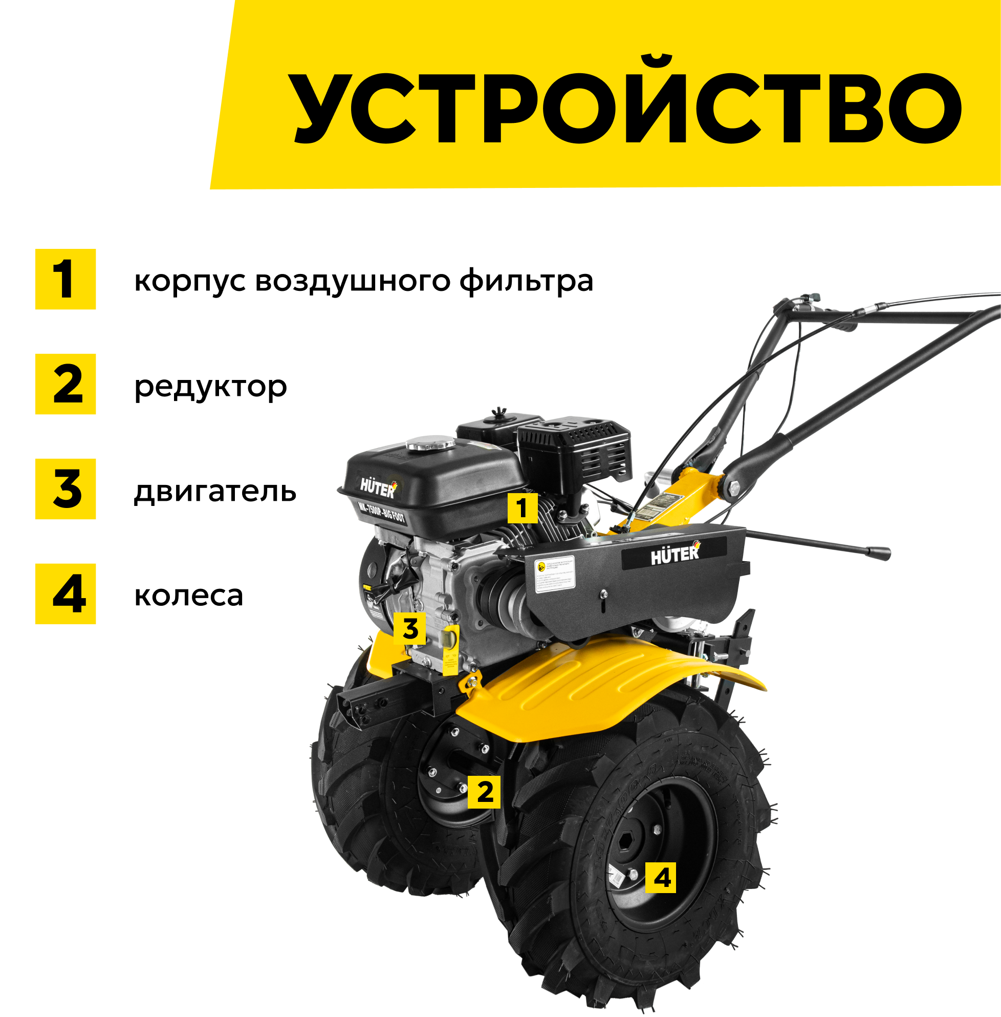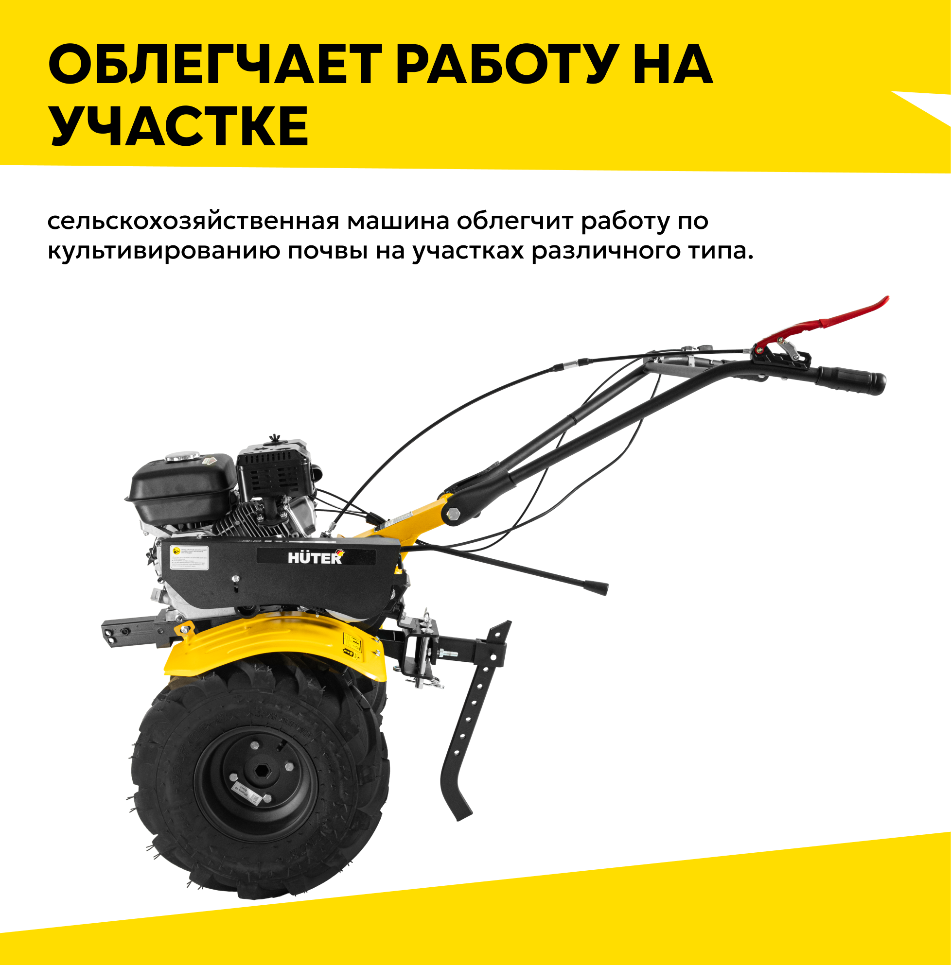 Сельскохозяйственная машина Huter МК-7500P BIG FOOT, 7.5 л. с, четырехтактный, бензин, бак – 3.6 л, ширина – 100 см интересное: