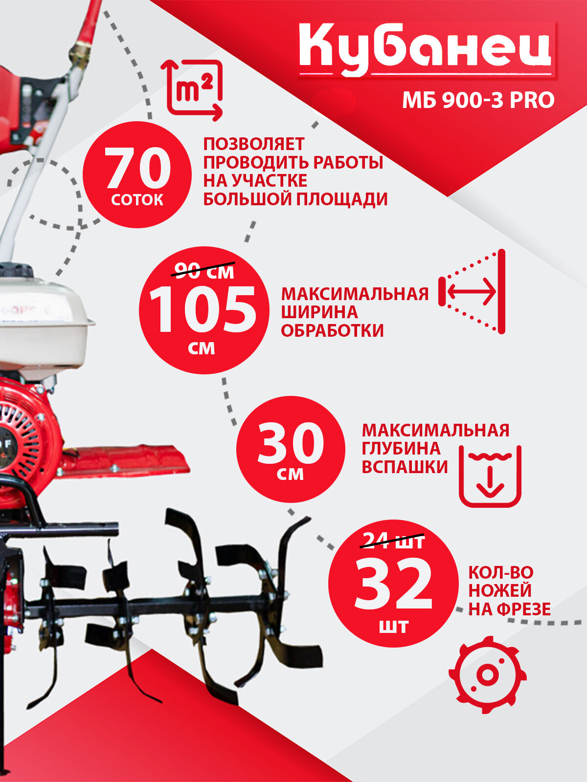 Мотоблок бензиновый двигатель КУБанец культиватор МБ 900-3 PRO с колесами 7 л. с, 3 скорости вперед, 1 назад интересное:
