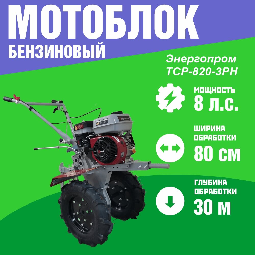Мотоблок бензиновый Энергопром ТСР-820-3PH, мощность 8 л/с, цепной редуктор, пневмоколеса 4.00-10 интересное:
