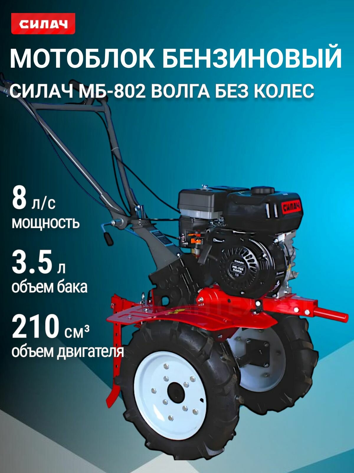 Купить Мотоблок бензиновый силач МБ-802 Волга/ культиватор 8.0 л. с/ без колес