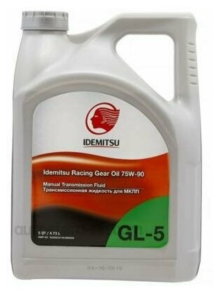 IDEMITSU 30305024953 Масло трансмиссионное синтетическое 4,73л - 75W-90 RACING GEAR OIL (ПАО) для механической трансмиссии и дифференциала, удовлетворяющих требованиям кл 1шт