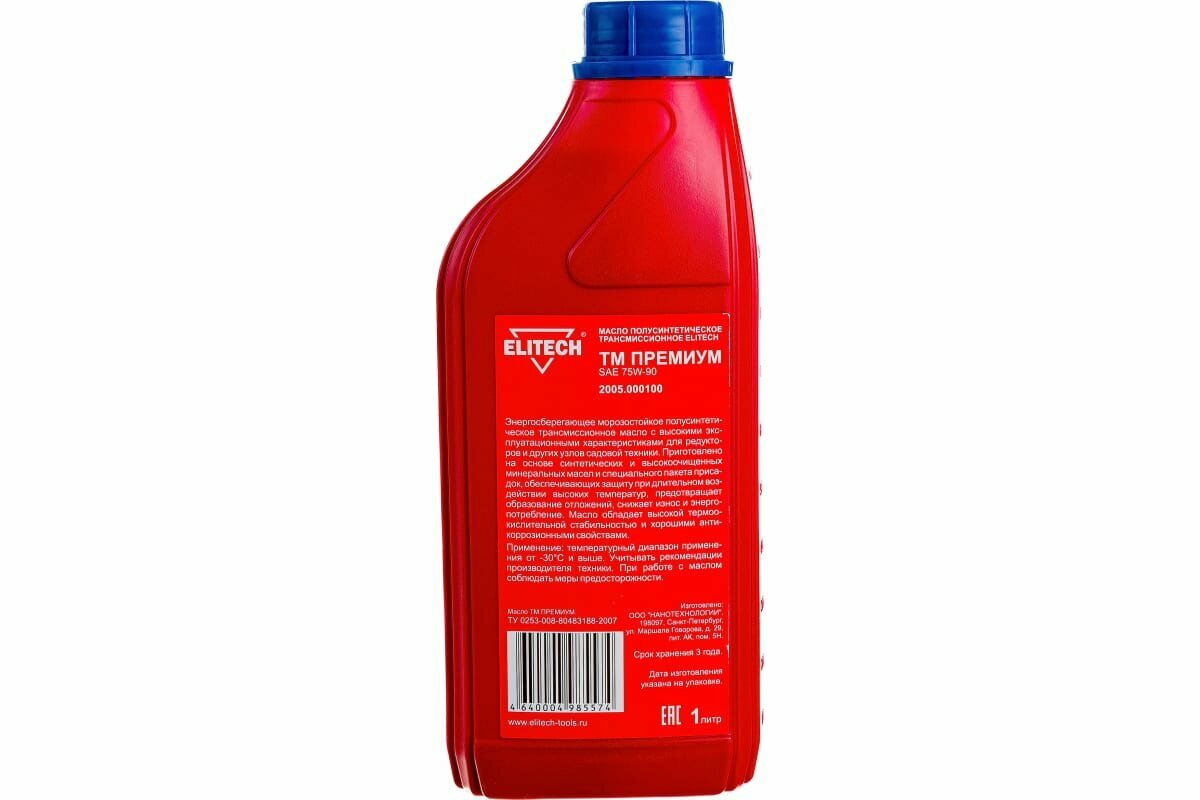 Премиум ELITECH ТМ SAE 75W-90 масло полу синтека трансмисионное для смазки редукторов,1л