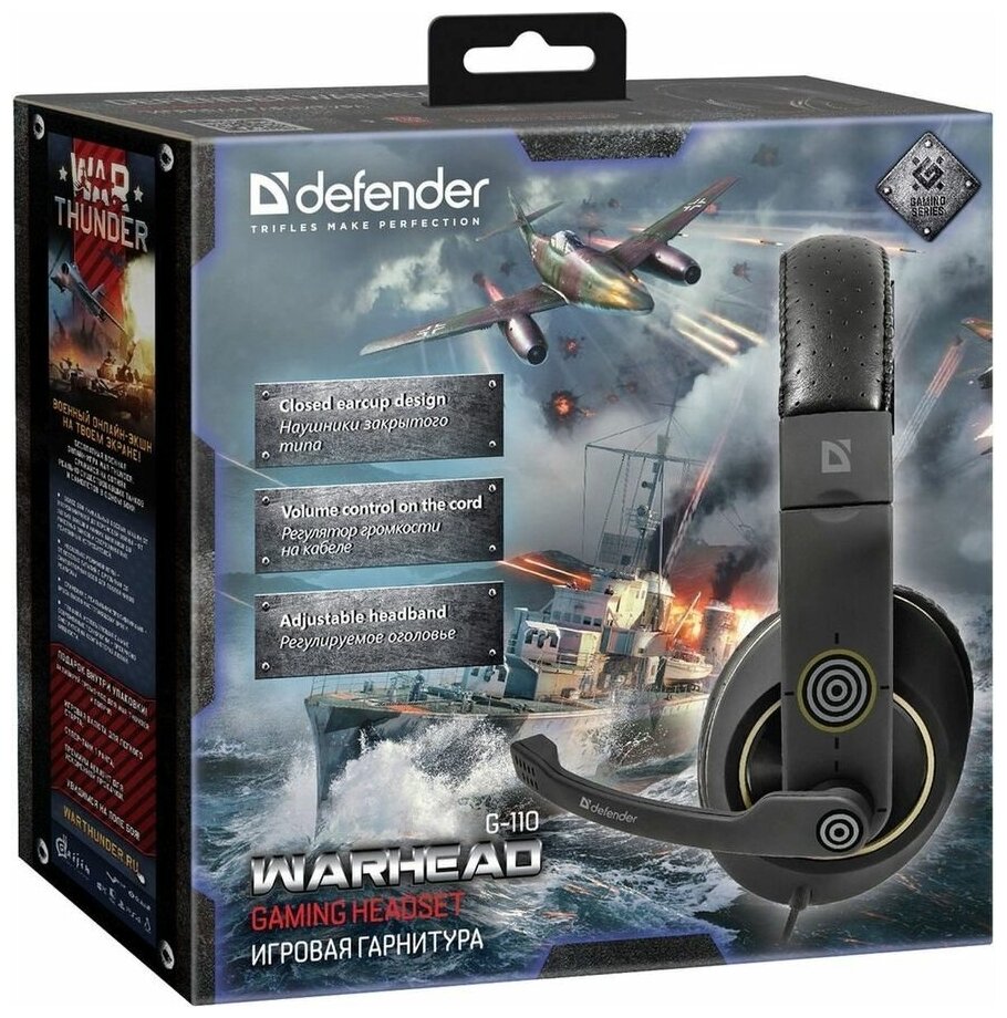 Игровая гарнитура Defender Warhead G-110 черный [40mm, 20Гц~20kГц, 32 Ом, 2.1 м]