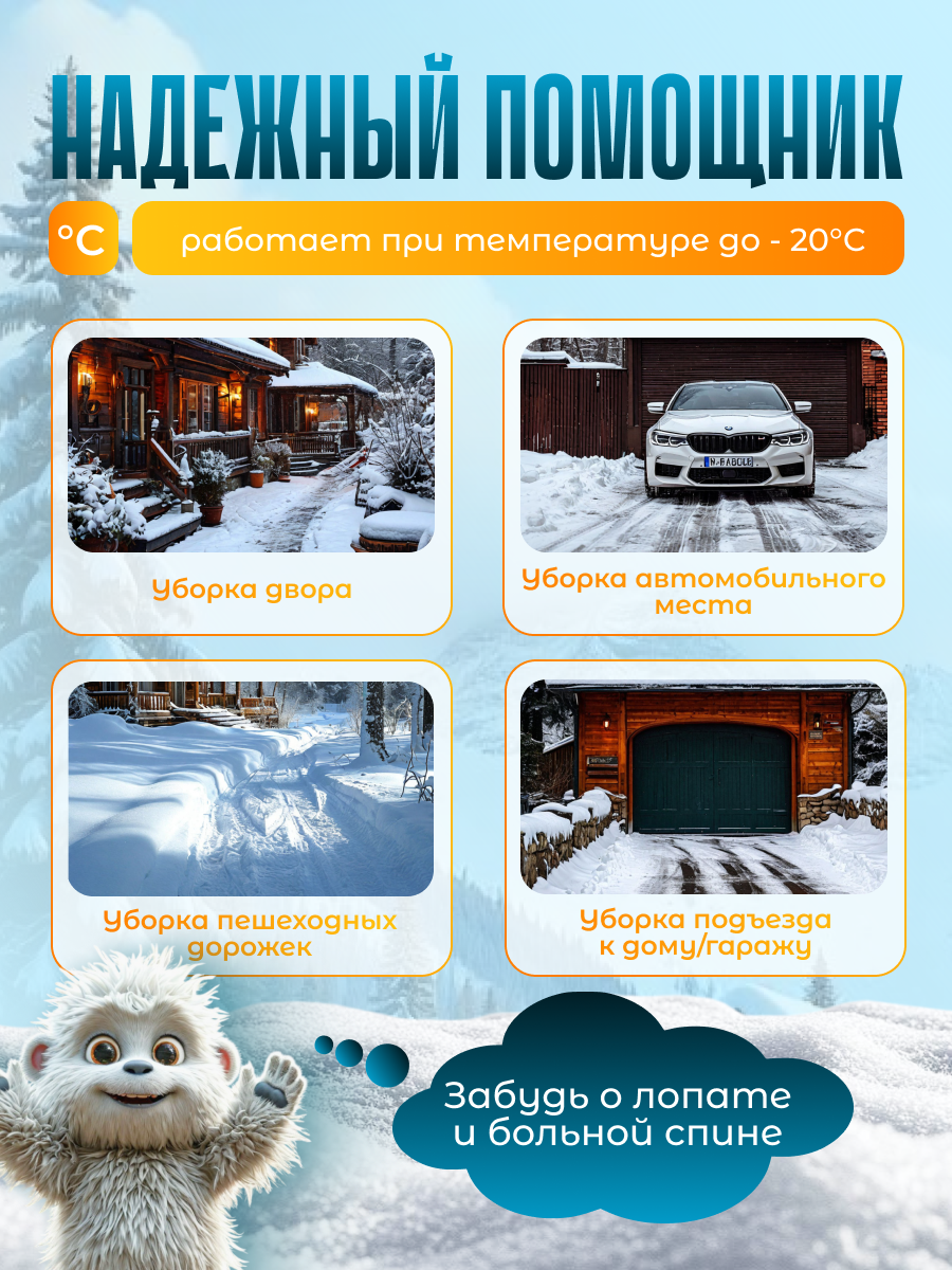 Снегоуборщик 1800Вт, аккумуляторный, дальность выброса 9м, синий интересное: