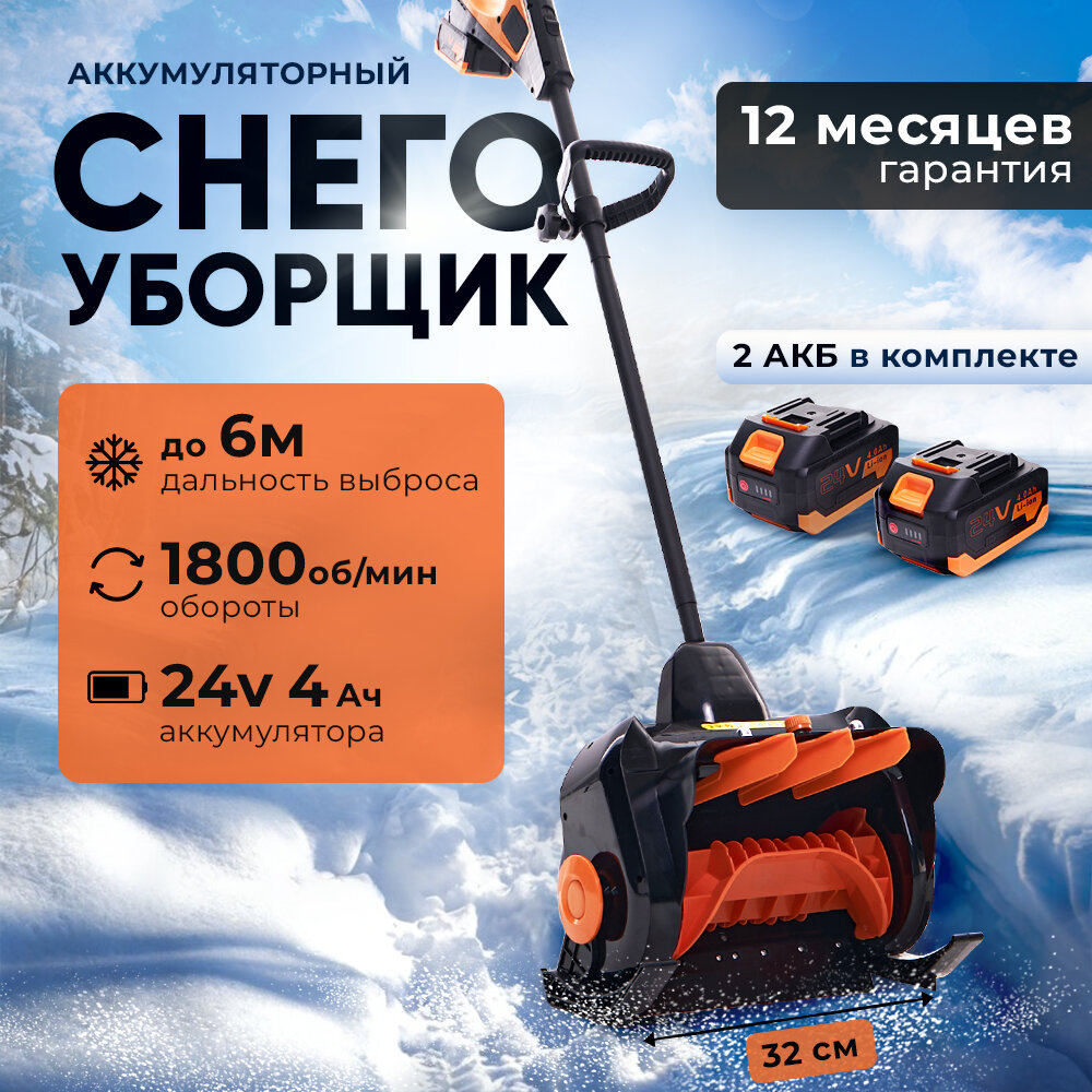 Снегоуборщик аккумуляторный CSP002 Max, 2*4 ач, зеленый / Снегоуборочная машина