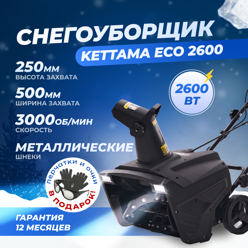Купить Снегоуборщик электрический Kettama ECO 2600 / Снегоуборочная машина