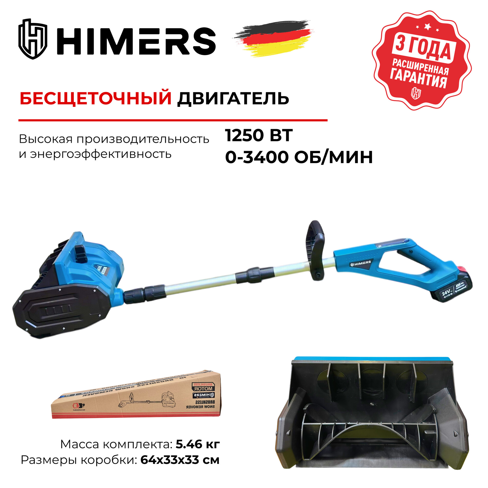 Лопата снегоуборщик HIMERS DLP1250B аккумуляторная 24V, 2 АКБ по 6 А. ч, 1250 Вт, шнек 25см, регулировка потока интересное: