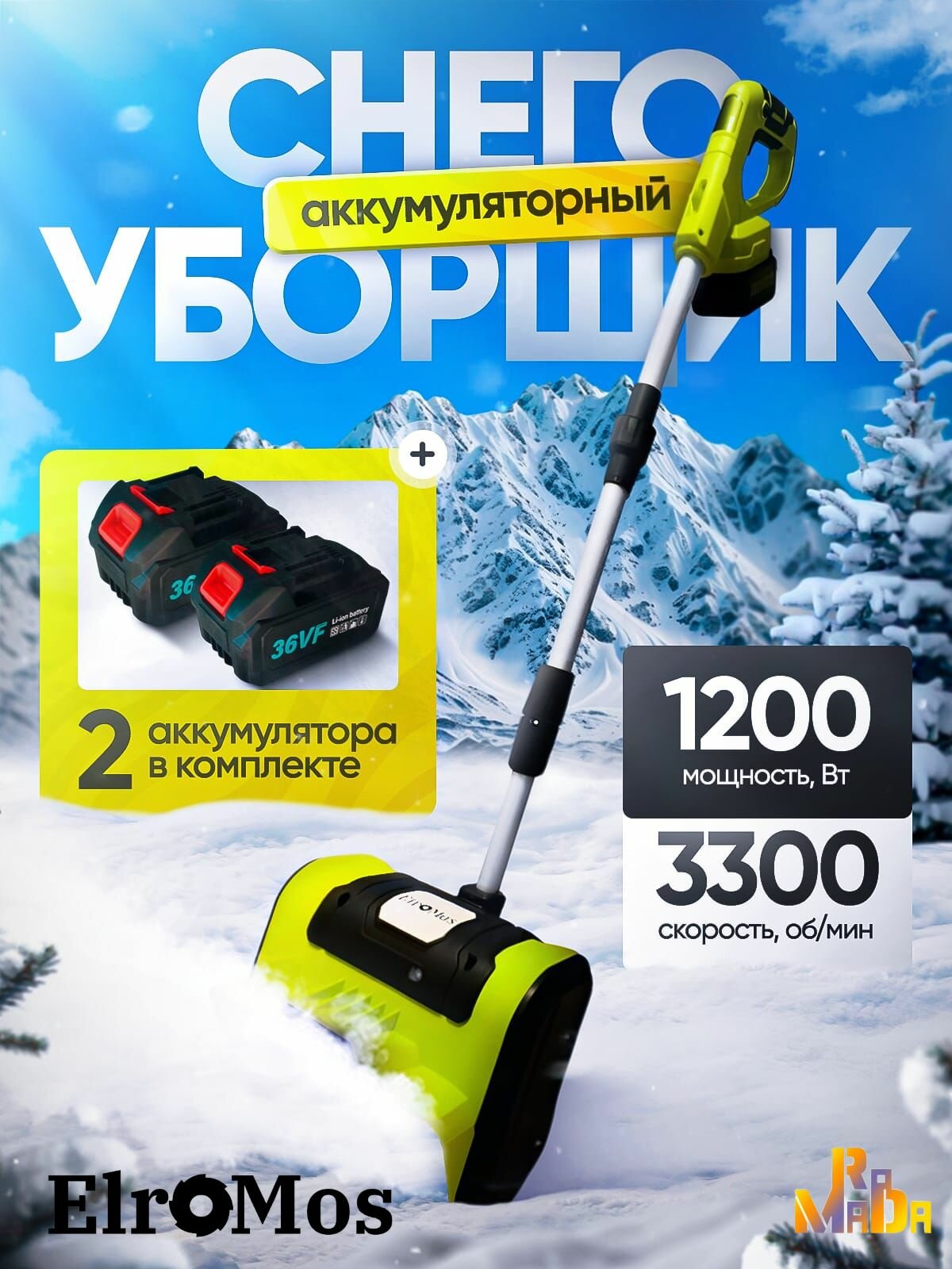 Снегоуборщик аккумуляторный лопата для уборки снега электрический 3300 об/мин 1200 Вт ElroMos интересное: