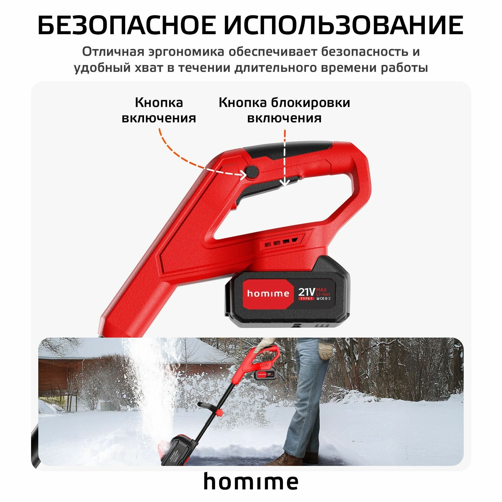 Снегоуборщик Homime Power PRO, аккумуляторный, беспроводной, электрическая лопата для снега, 2 аккумулятора интересное: