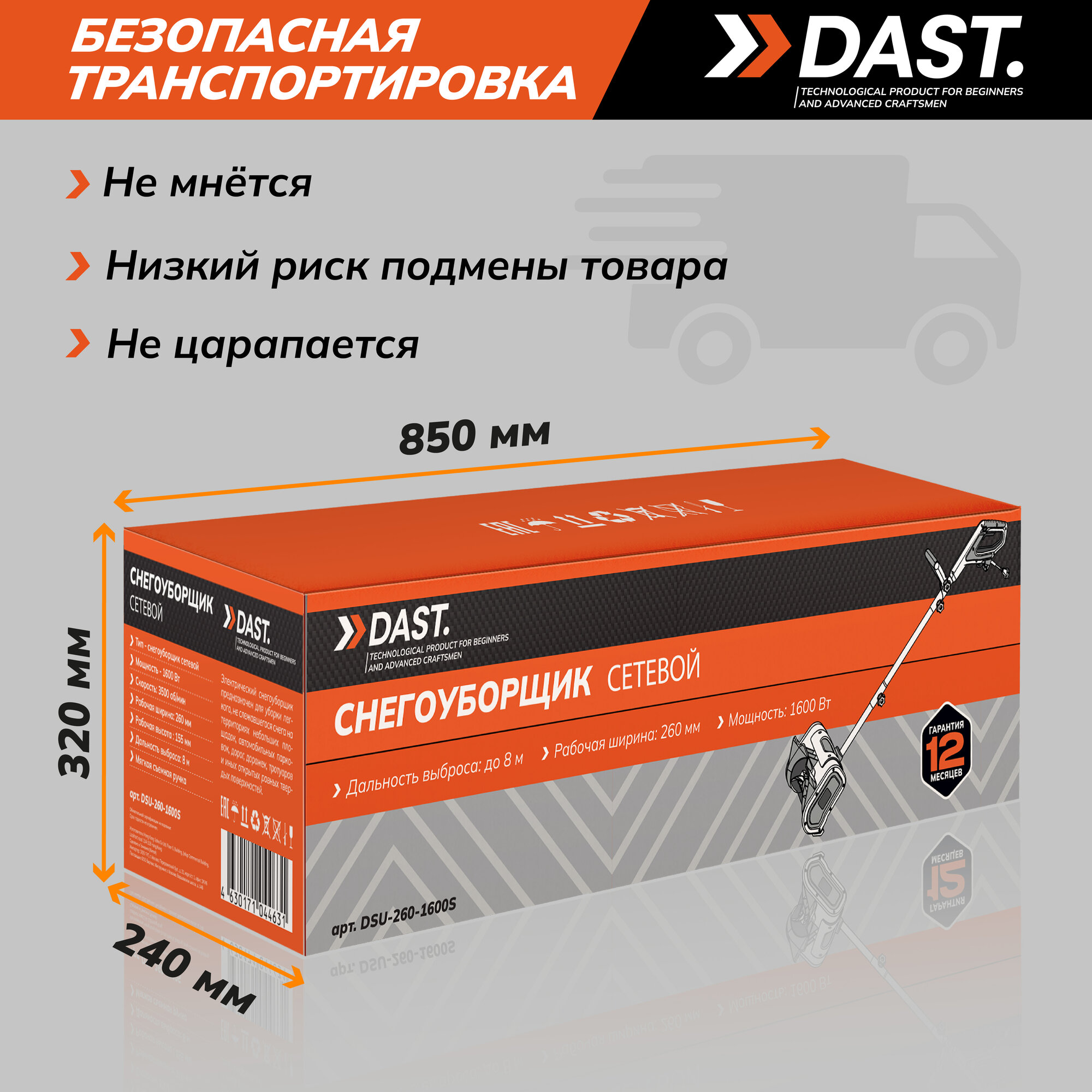 Снегоуборщик электрический DAST 1600 Вт, ковш 26x15.5 см, снегоуборочная лопата интересное: