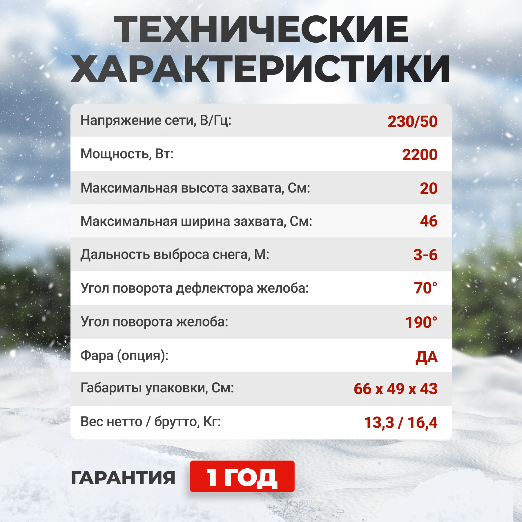 Электрический снегоуборщик BRAIT BST-2200YBL, колесный, ширина захвата 46 см интересное: