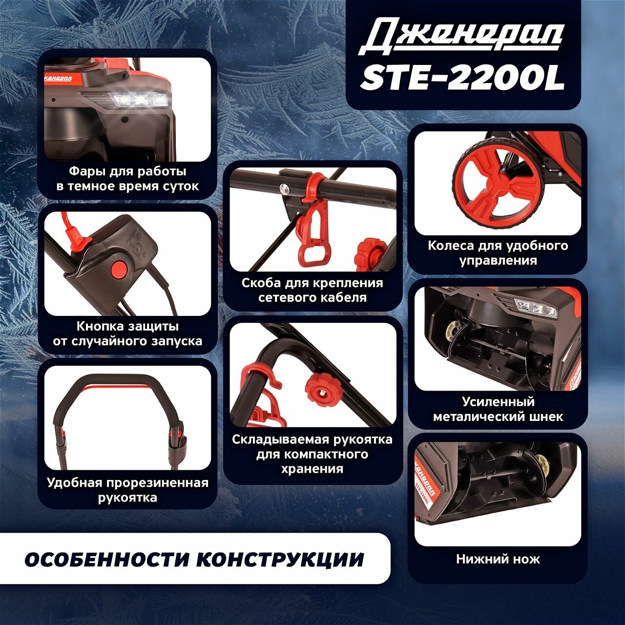 Снегоуборщик электрический Дженерал STE-2200L Снегоуборочная машина с металлическим шнеком, ковш 51*30.5 см интересное: