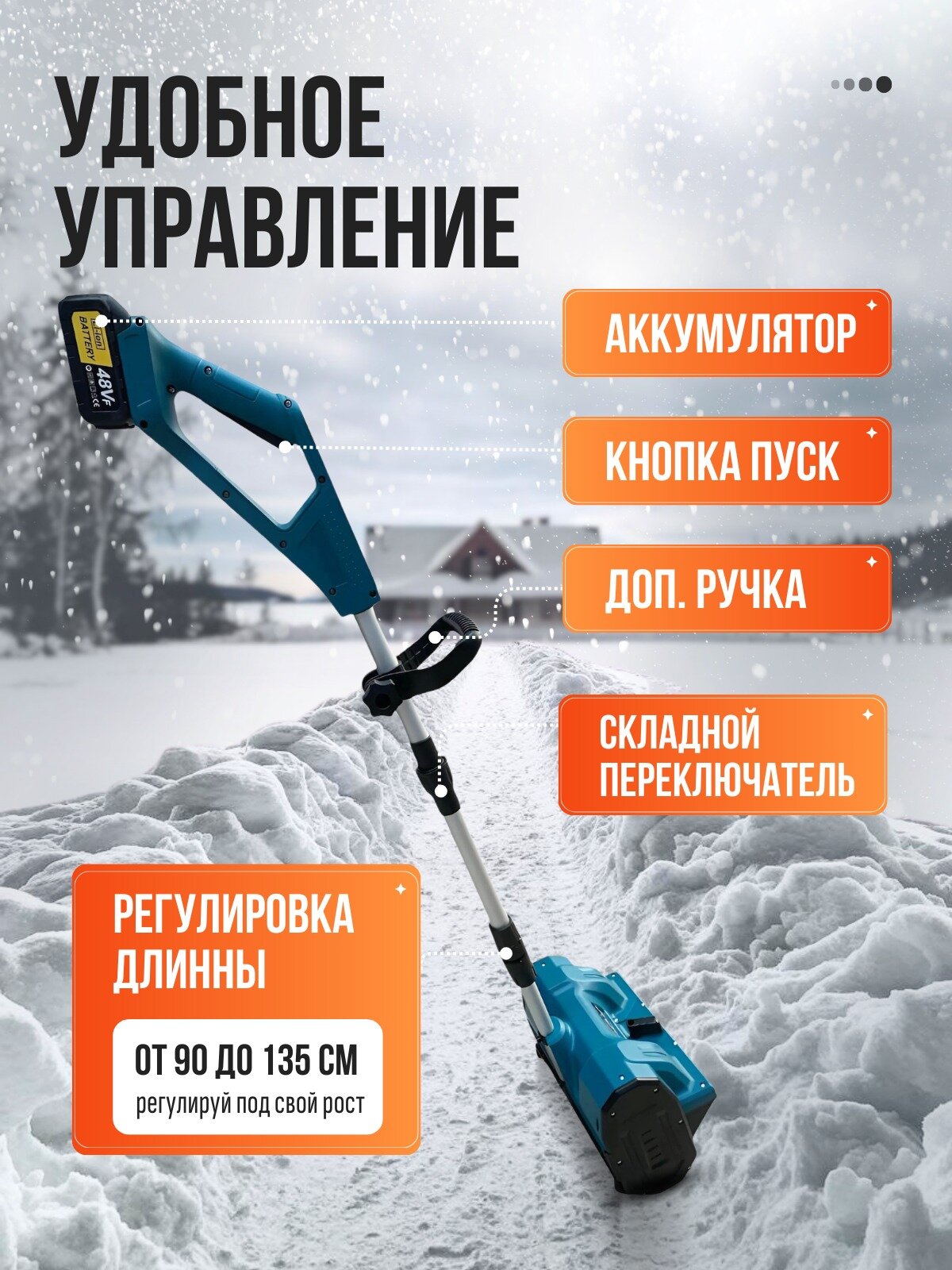 Снегоуборщик аккумуляторный лопата, 2 АКБ 4 Ач и ЗУ, Синий ручной, для уборки снега интересное: