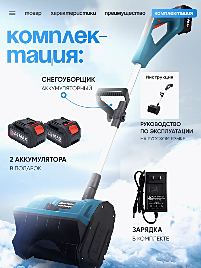Снегоуборщик аккумуляторный, Электрическая лопата для уборки снега, Синий интересное: